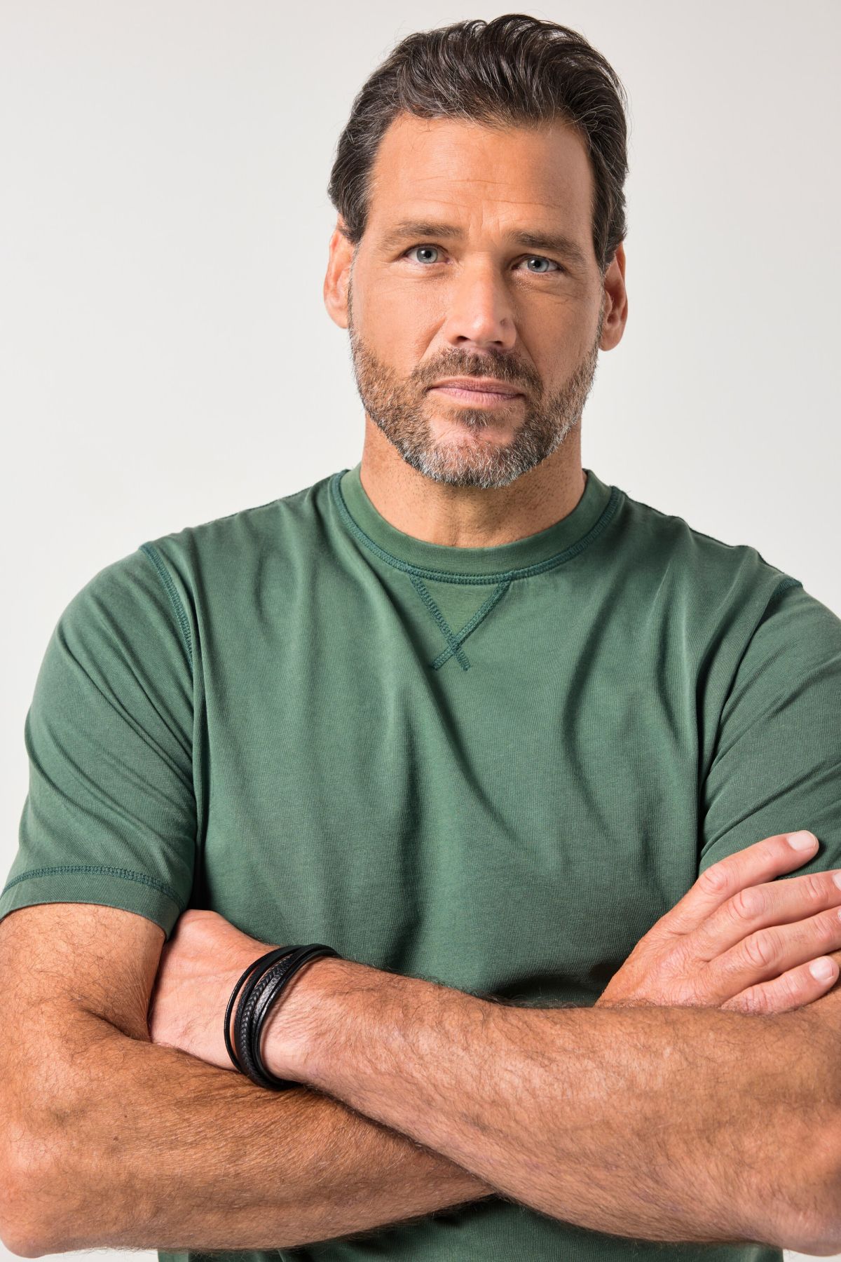 Coupe spéciale jusqu'au 8 XL, Style vintage, délavage acid washed, Surpiqûres en forme de triangle au niveau de l'encolure, Manches courtes, Long. entrej. env. 74-86