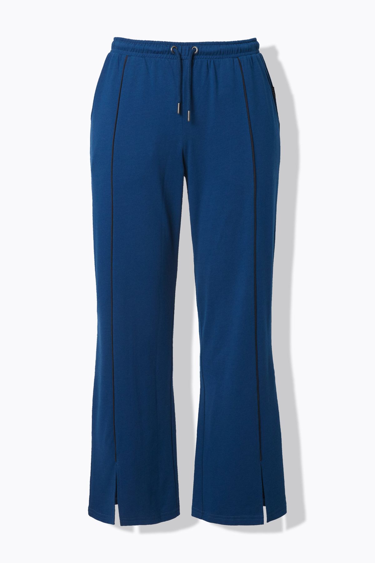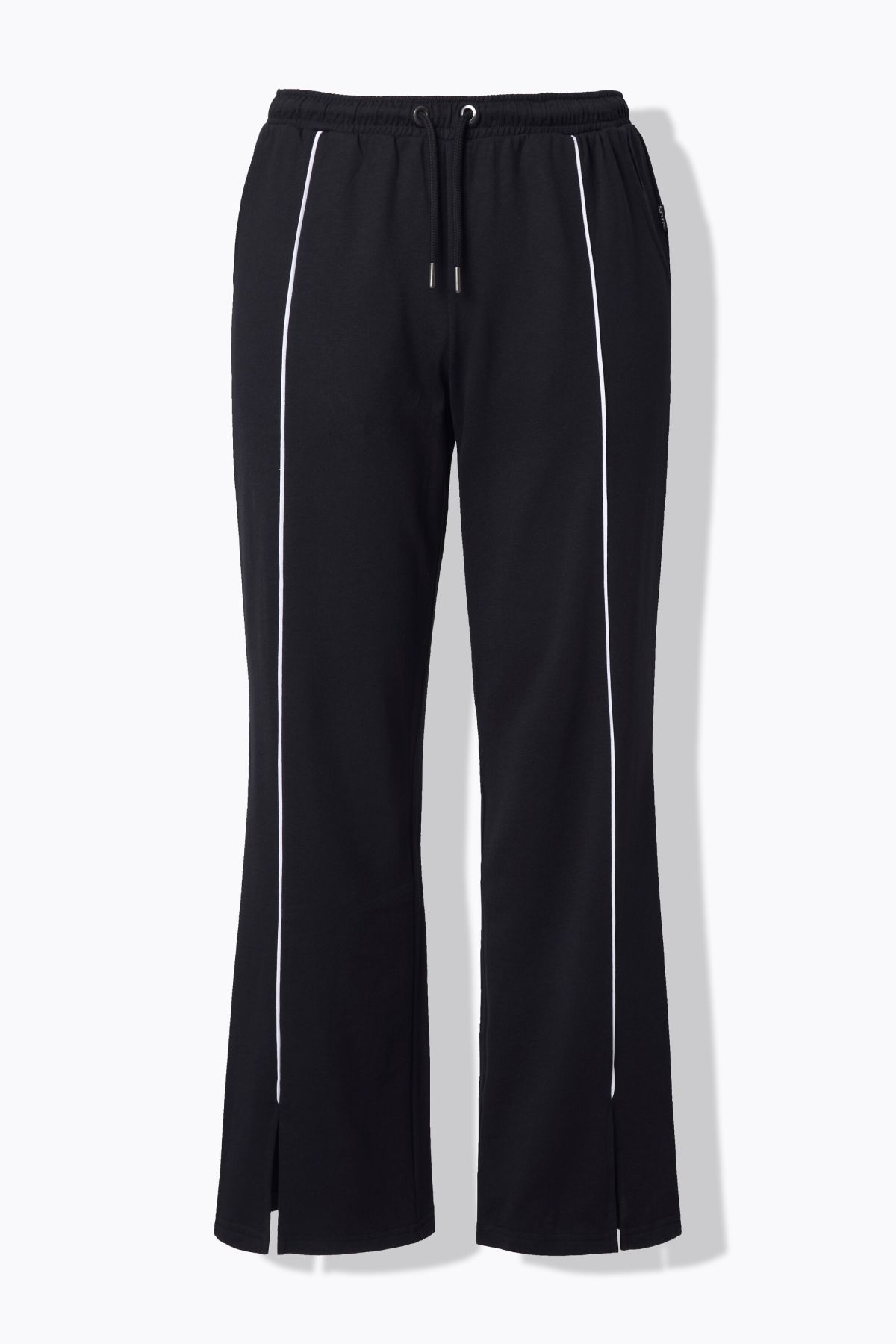 Jogginghose, bequemes, gerades Bein, mit farbiger Paspel und Schlitz vorne am Saum. Elastikbund mit Bindeband und seitlichen Einschubtaschen.