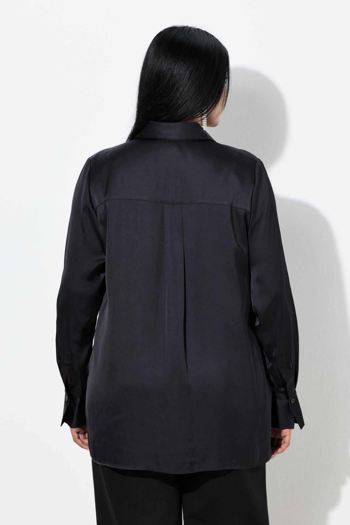 Bluse, A-Linie, aus schimmerndem Viskose-Satin mit opulenter Perlen-Stickerei auf dem Iris-Design. Hemdkragen, verdeckte Knopfleiste, Langarm mit Manschetten. Saum mit Seitenschlitzen - noch mehr Tragekomfort.& 10;<br> & 10;<br>Premium-Mode für Dich! & 10;<br>selection by Ulla Popken steht für Qualität und tragbare Eleganz. Klassiker verwandelt selection by Ulla Popken in moderne Highlights aus hochwertigen Materialien mit aufwendigen Drucken und Details – perfekt für jeden Tag und besondere Anlässe! & 10;<br>& 10;<br>& 10;