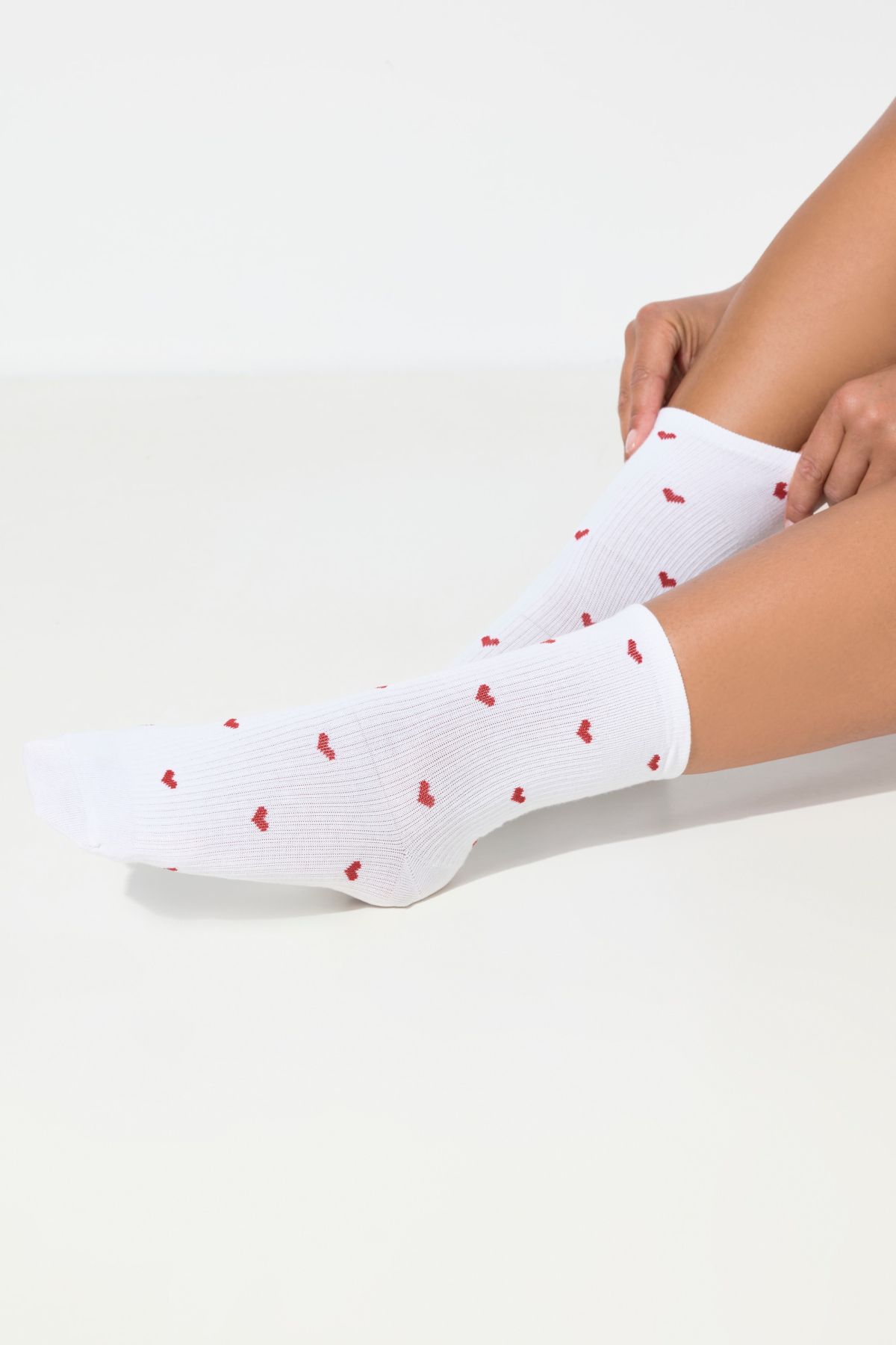 Kompressions-Strümpfe mit roten Herzen. Fürs Schlangestehen, im Zug oder am Schreibtisch – diese Stützstrümpfe sind ideal bei langem Stehen und Sitzen.& 10;Auch als Kniestrumpf erhältlich: Artikelnummer: 844018100& 10;<br>