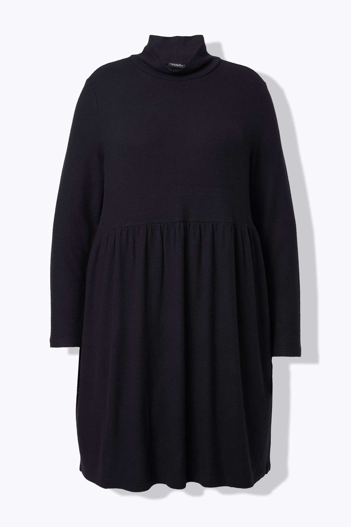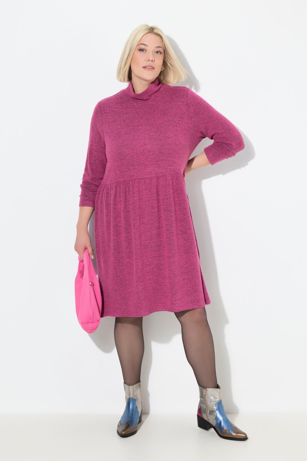 Robe en maille, manches longues et col montant, coupe évasée