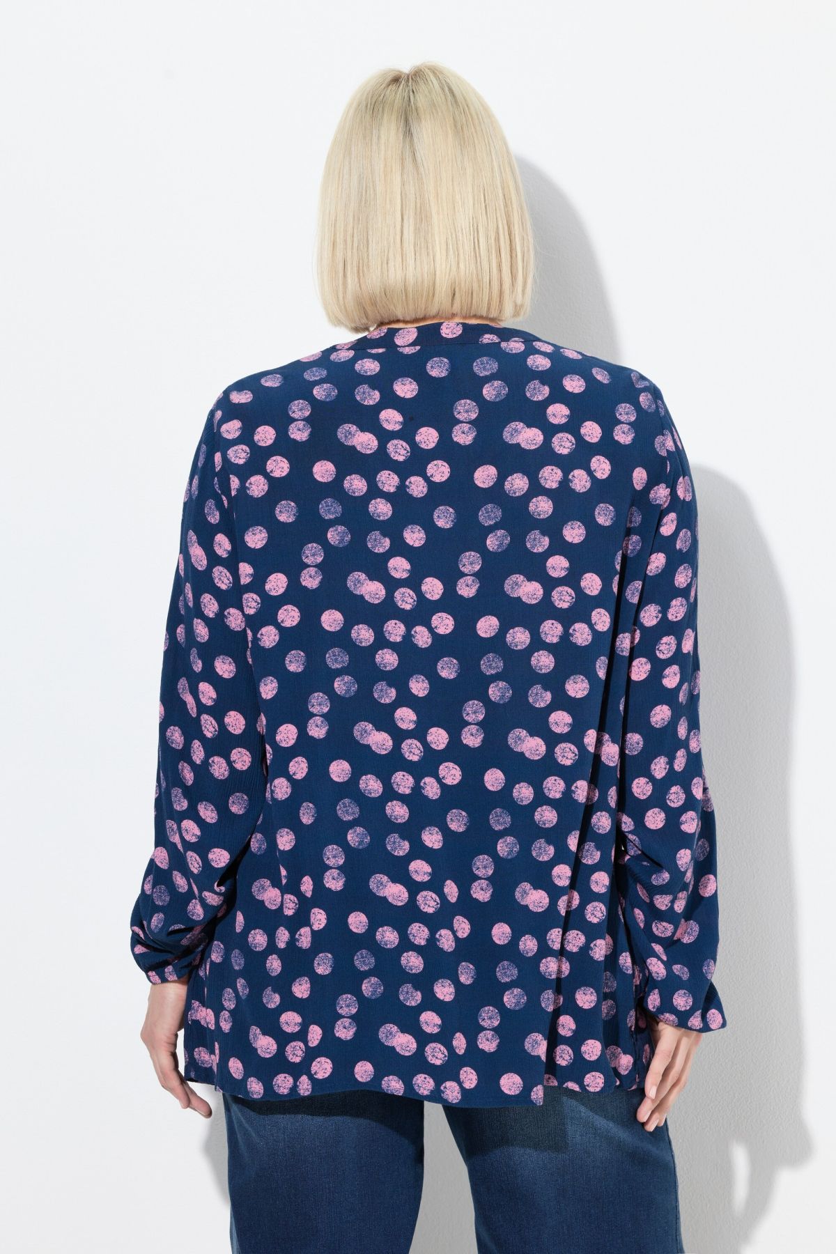 Motif à pois tendance, Col tunisien avec petit cordon à nouer, Coupe évasée, épaules smockées élastiques, Manches longues avec extrémités élastiques, Crêpe de viscose au tombé fluide, Long. selon taille env. 68-76 cm.