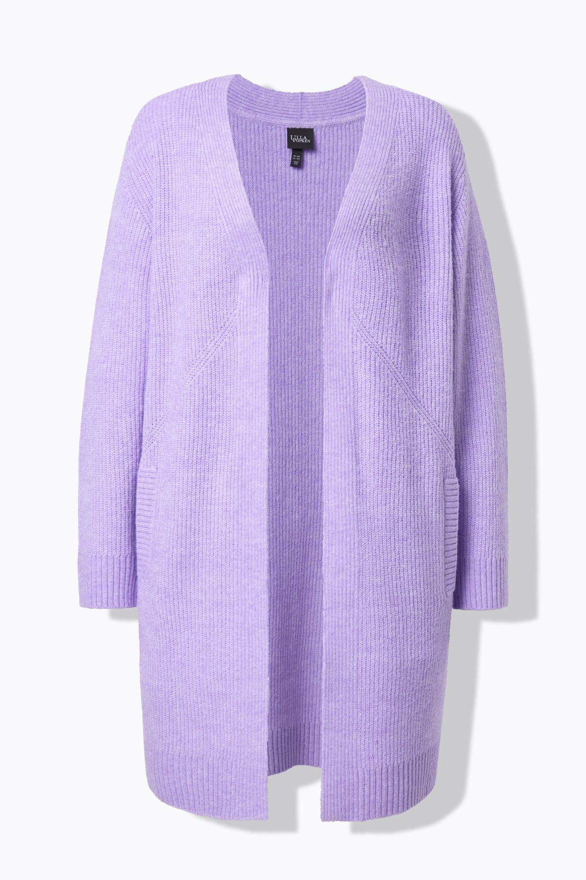 Long-Strickjacke, Relaxed Fit, aus weichem Rippstrick mit dekorativer Querrippe. Moderne, offene Form mit überschnittenen Schultern, 2 Taschen und Langarm. Rippbündchen.