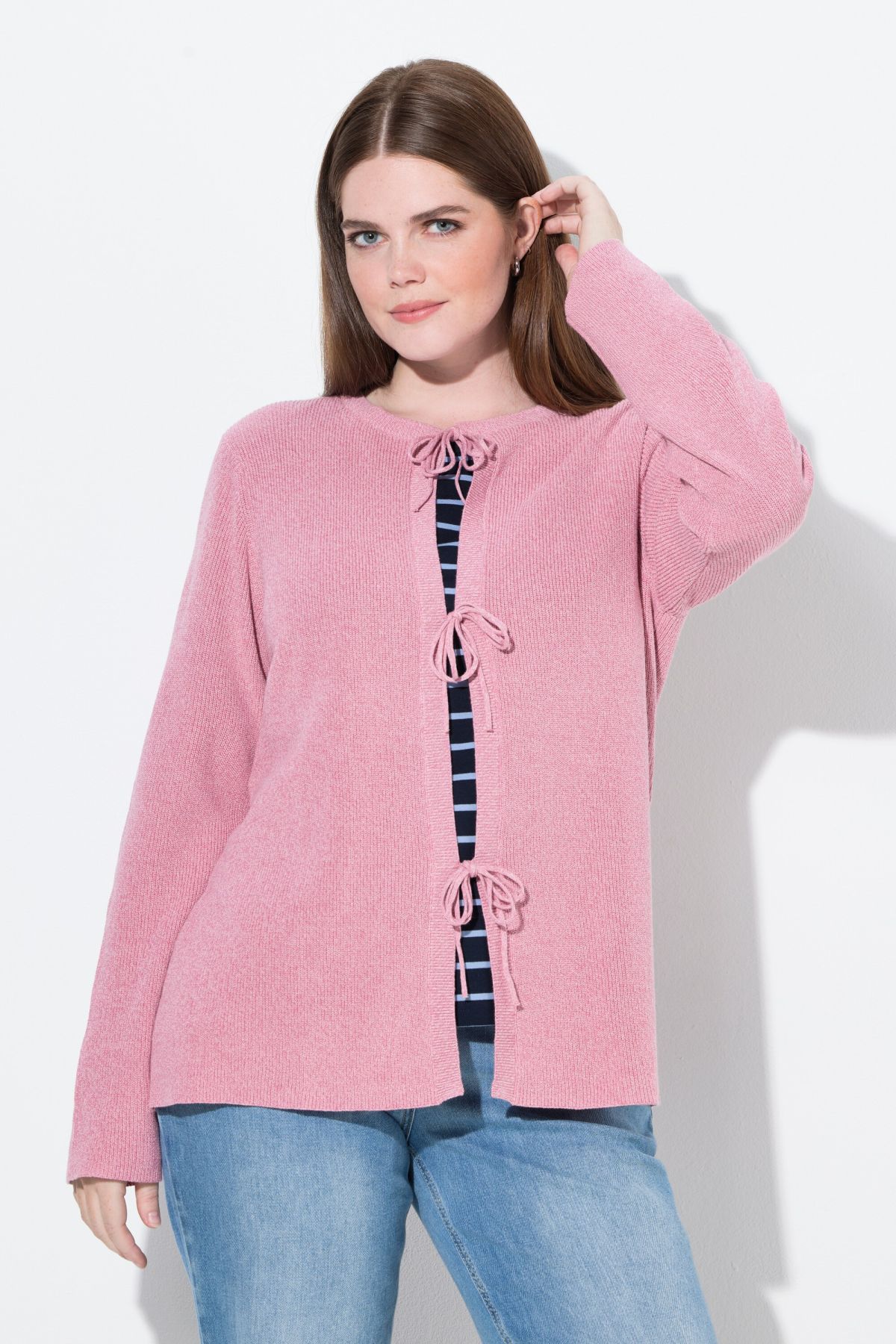 Cardigan en coton bio, encolure ronde et rubans en guise de fermeture