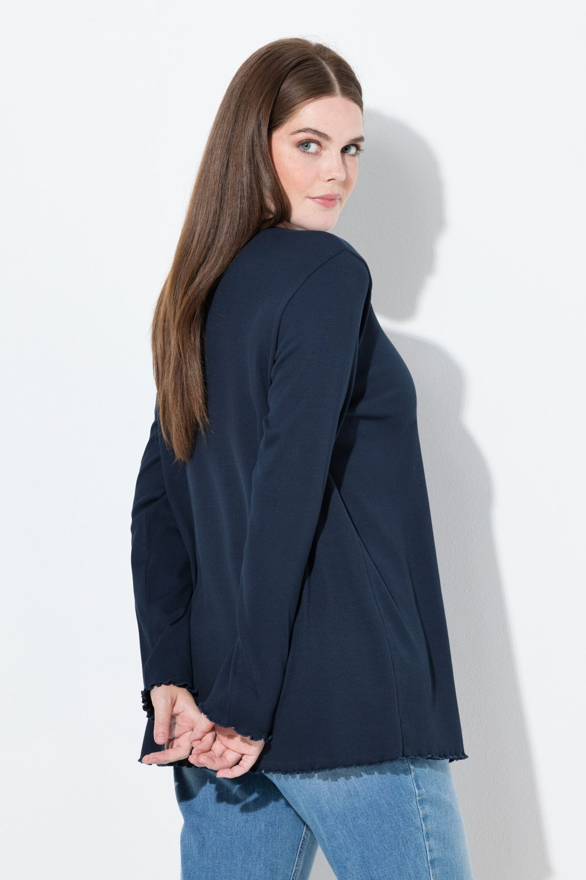 Jersey côtelé agréablement élastique, Décolleté en V arrondi, Base asymétrique avec fente en biais, Petits volants aux extrémités, Coton bio durable, avec teneur en élasthanne, Long. selon taille env. 72-76 cm.