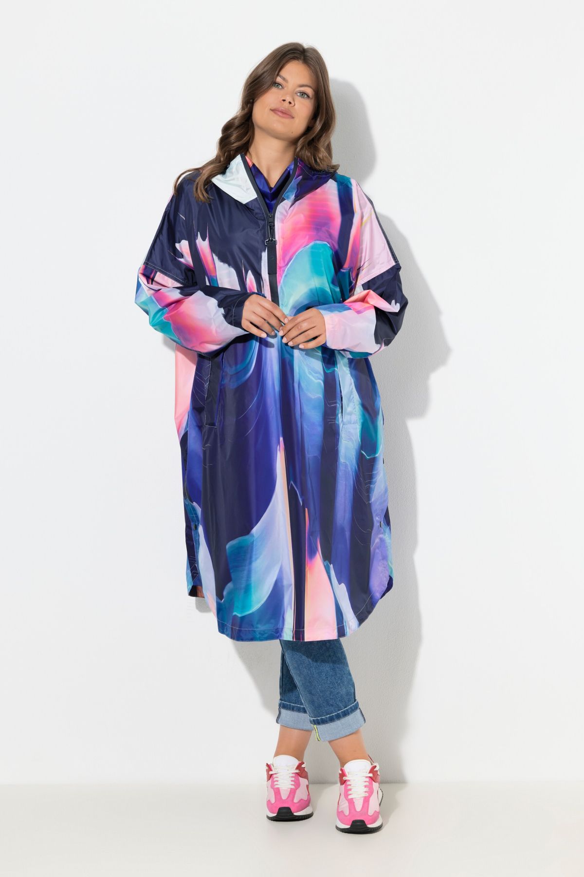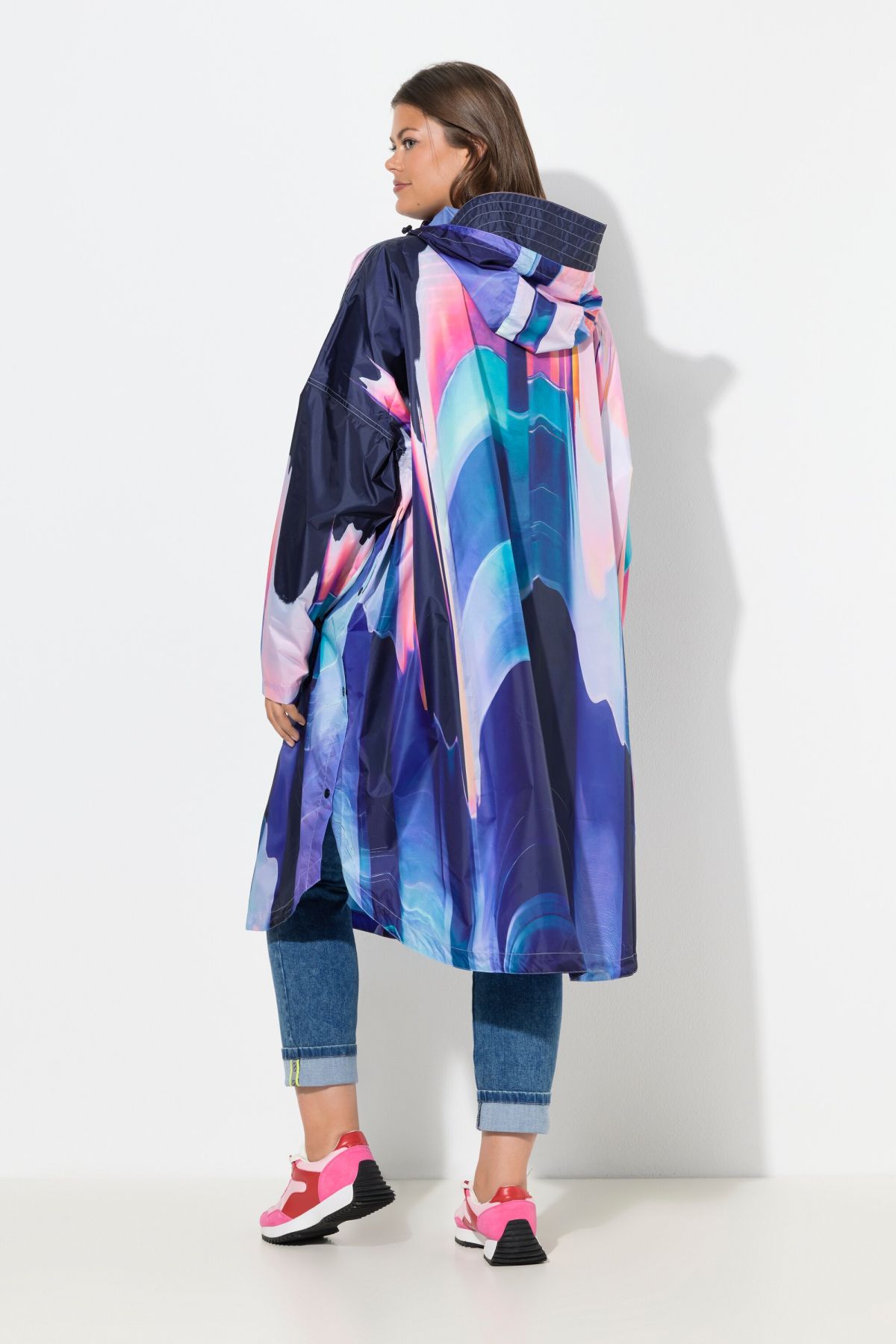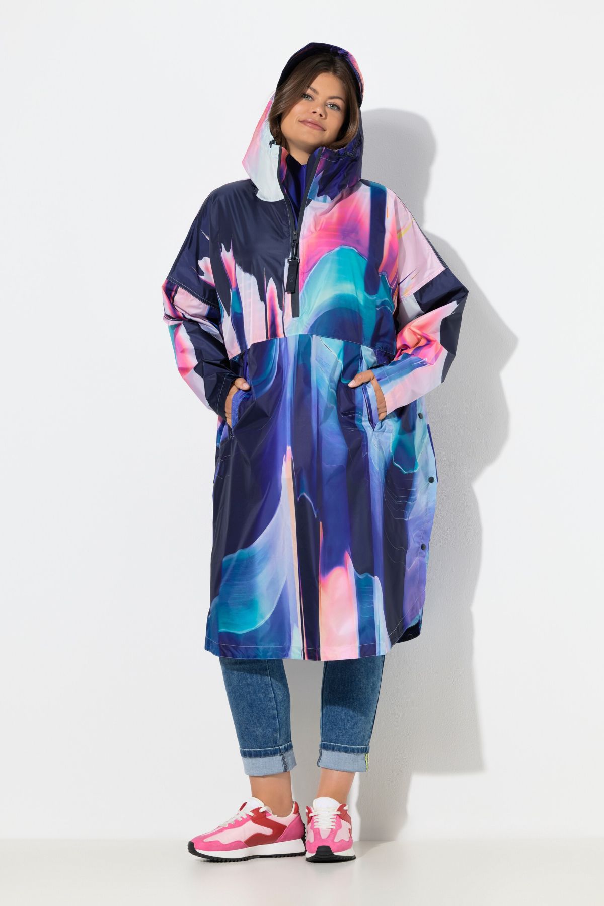 Gute Laune trotz Schietwetter! Mit seinen auffälligen, mehrfarbigen Prints wird dieses Unisex-Regencape garantiert zum Hingucker – selbst an grauen Regentagen. Ob beim Spaziergang am Meer, über Felder oder durch die Stadt: Das Cape sorgt für positive Vibes und schützt dich zuverlässig vor Wind und Nässe.& 10;Für Fahrradfahrer ist es der ideale Begleiter bei wechselhaftem Wetter. Die verstellbare Kapuze, praktischen Einschubtaschen und das funktionale Design bieten dir hohen Tragekomfort. Der wasserdichte Oberstoff (Wassersäule: 5.000 mm), kombiniert mit winddichten und atmungsaktiven Eigenschaften (5.000 g/m²/24h), sorgt dafür, dass du bei jedem Wetter bestens ausgerüstet bist.