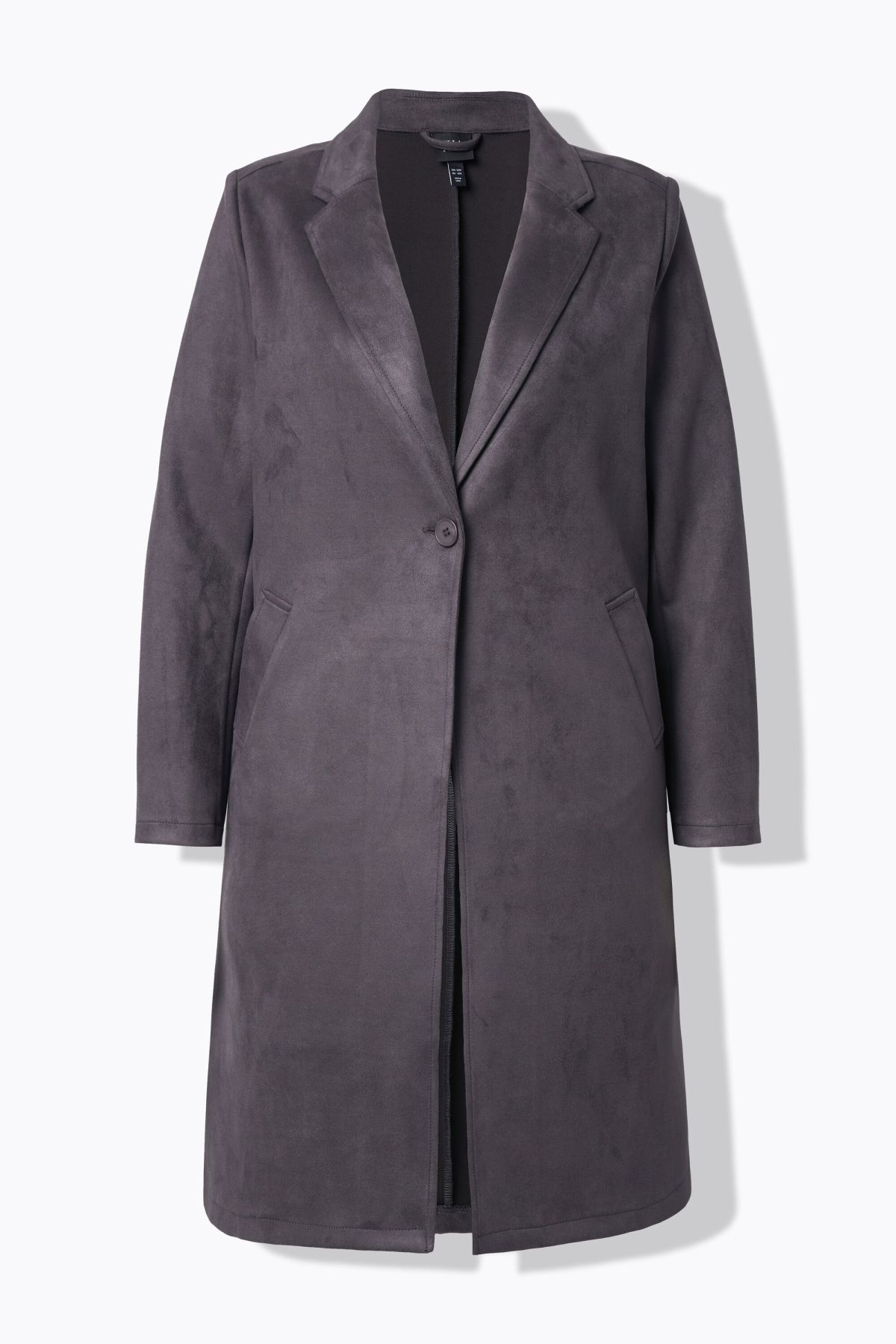 Velours-Longblazer, bequeme, längere Passform, aus weicher Velours-Lederoptik. Klassisch mit Reverskragen, Knopfverschluss und seitlichen Einschubtaschen. Langarm. Seitenschlitze für noch mehr Tragekomfort. Besonders leichte Verarbeitung ohne Futter.