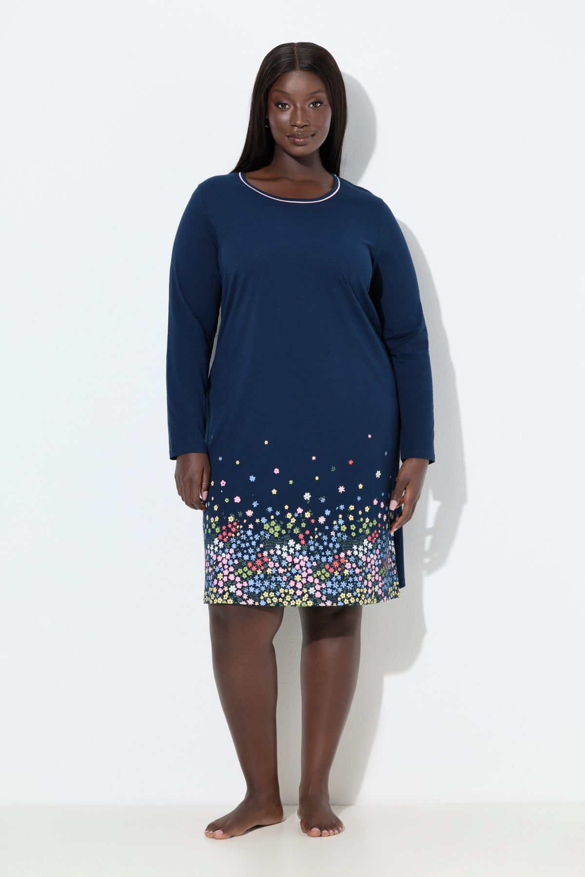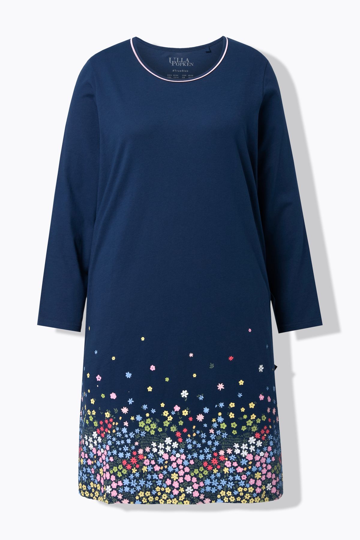 1 x mit Blumenmuster und V-Ausschnitt, 1 x einfarbig mit Rundhalsausschnitt und Blumen, Seitenschlitze für mehr Tragekomfort, Langarm, atmungsaktive Baumwolle - ideal für die Nacht, Länge ca. 100-105 cm.