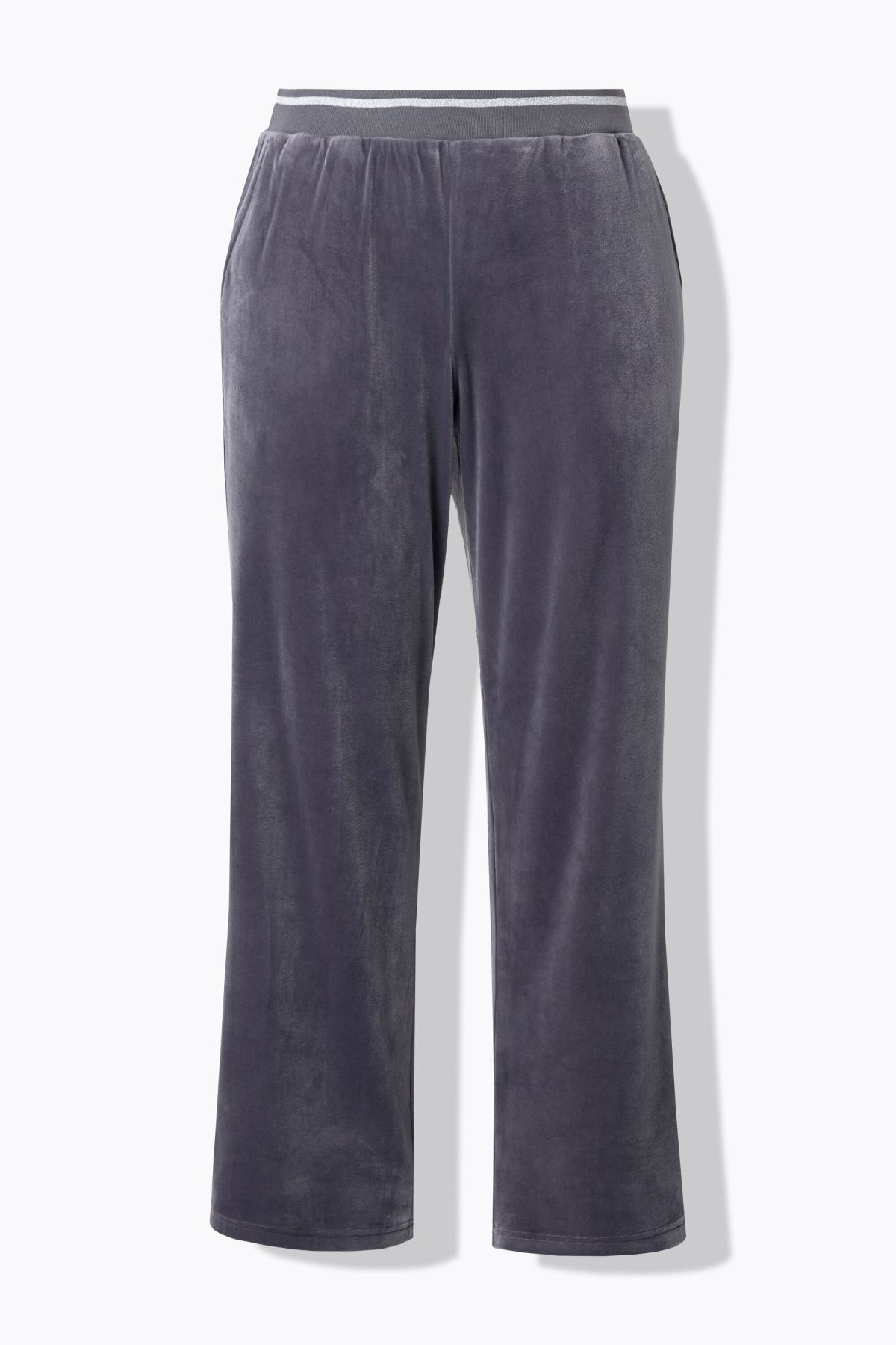 Homewear-Nickihose, gerades Bein, superbequem und kuschelweich aus Nicki. Rippbund mit Glitzerstreifen, seitliche Einschubtaschen.