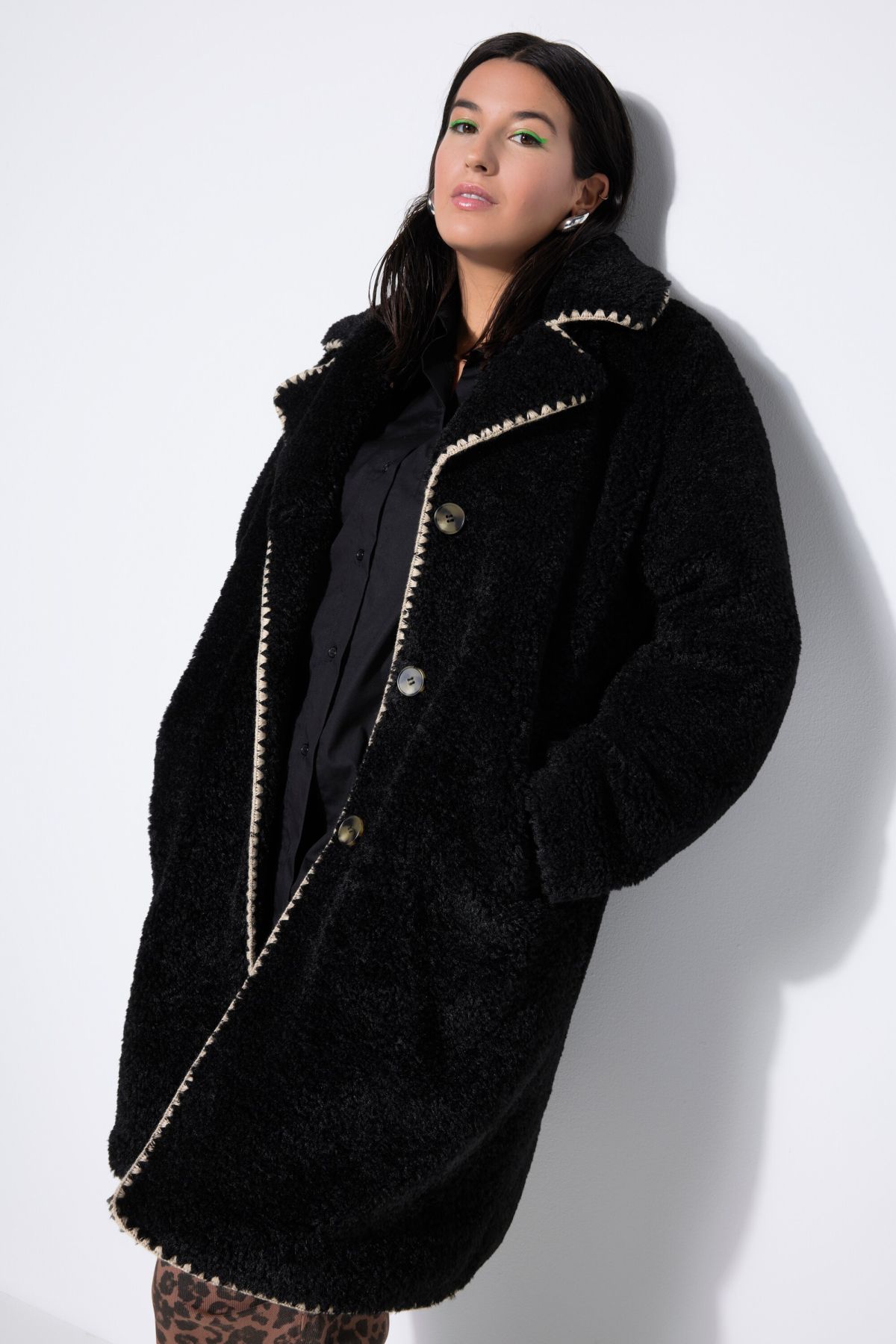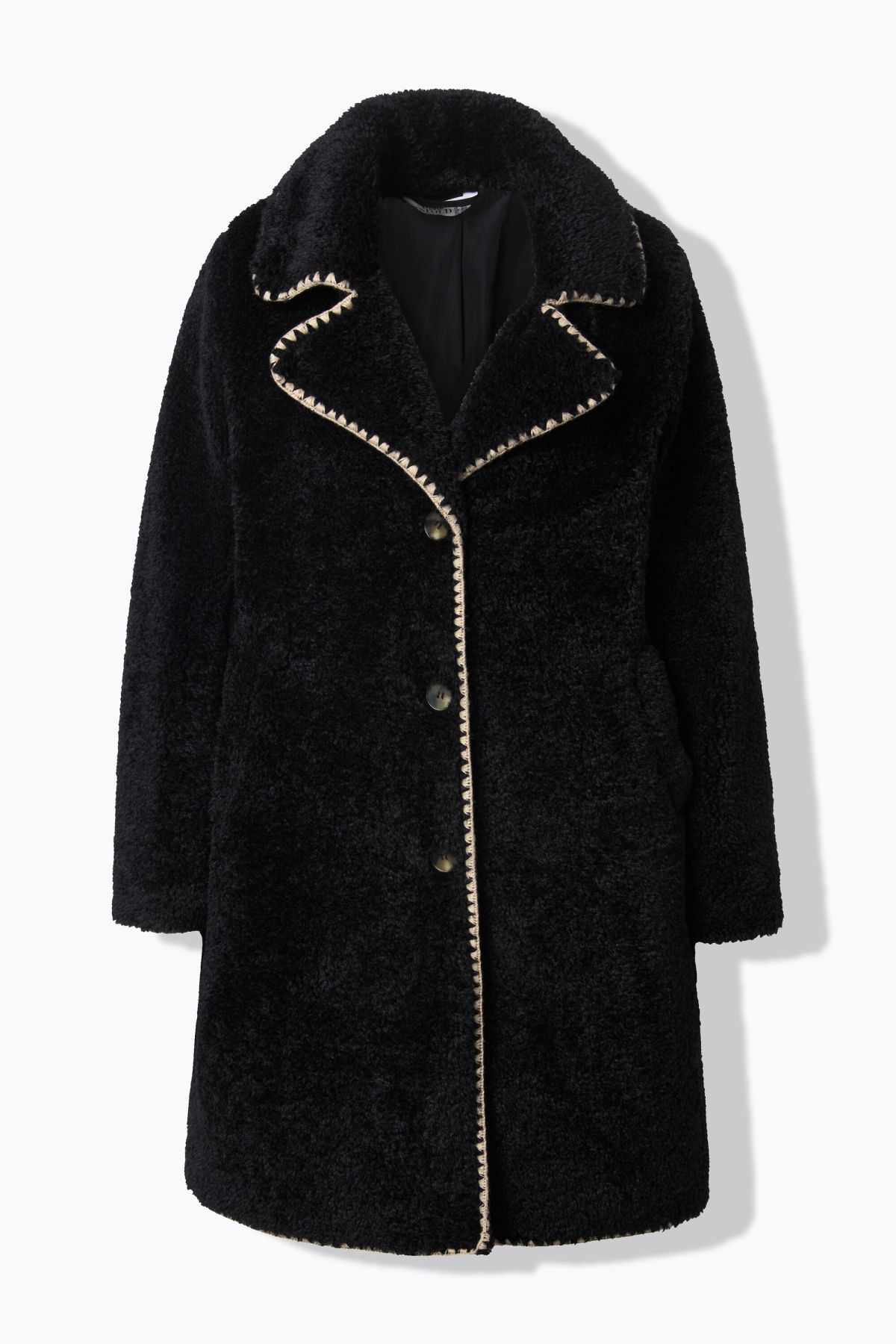 Coupe légèrement évasée, Matière polaire bouclée à la fois douce et confortable, Coutures fantaisie, Col à revers, Patte de boutonnage, Long. env. 100 cm.