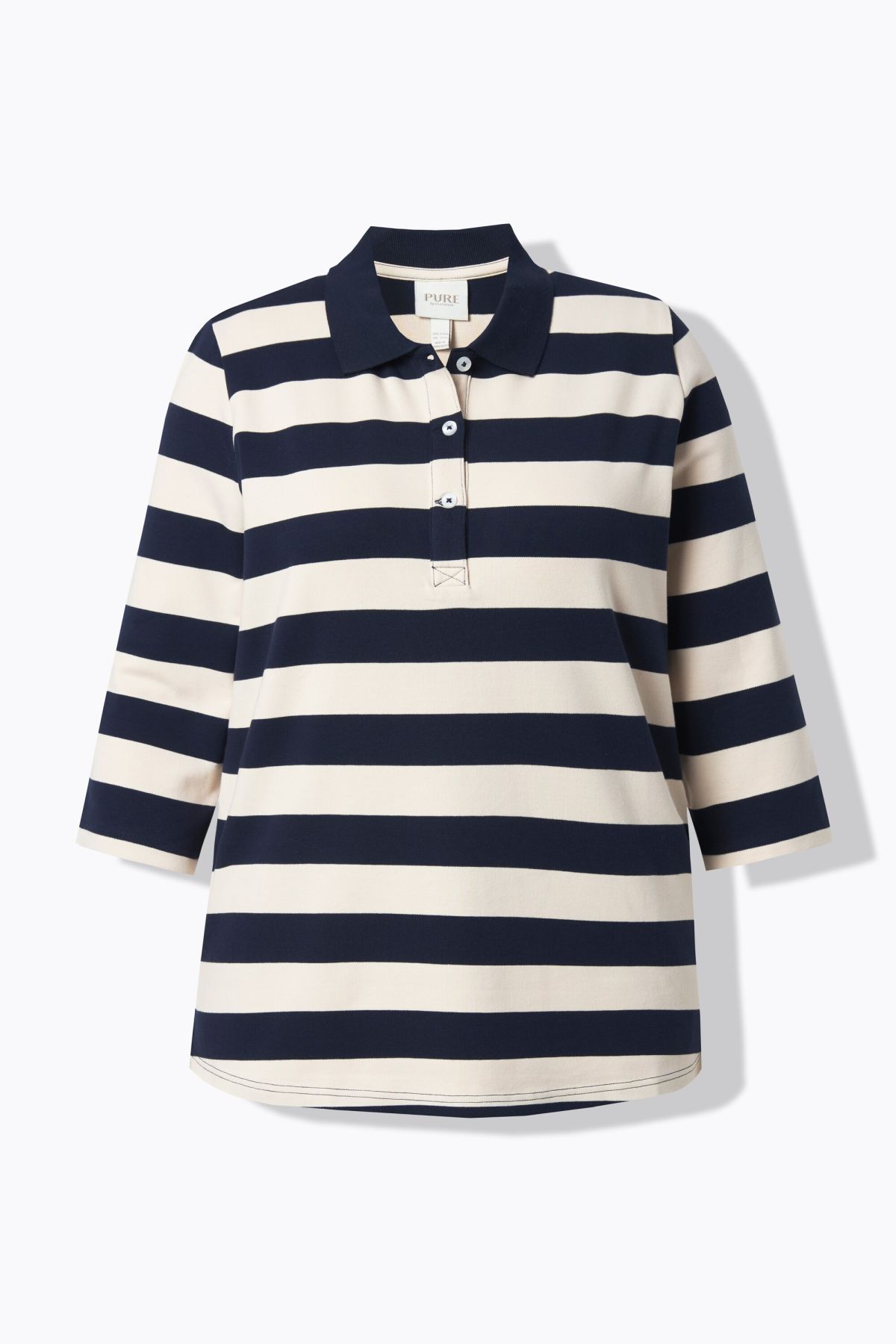 Sweat-shirt polo à rayures, manches 3/4, coton bio