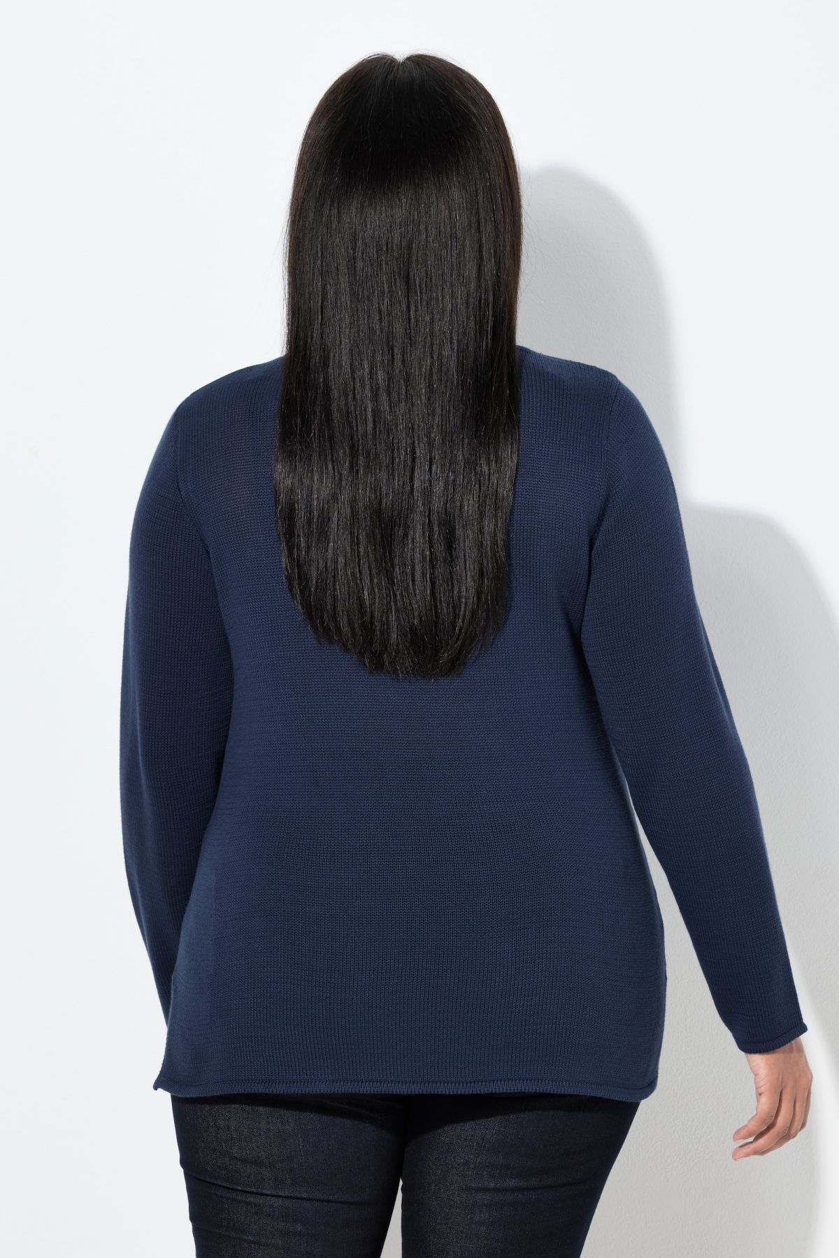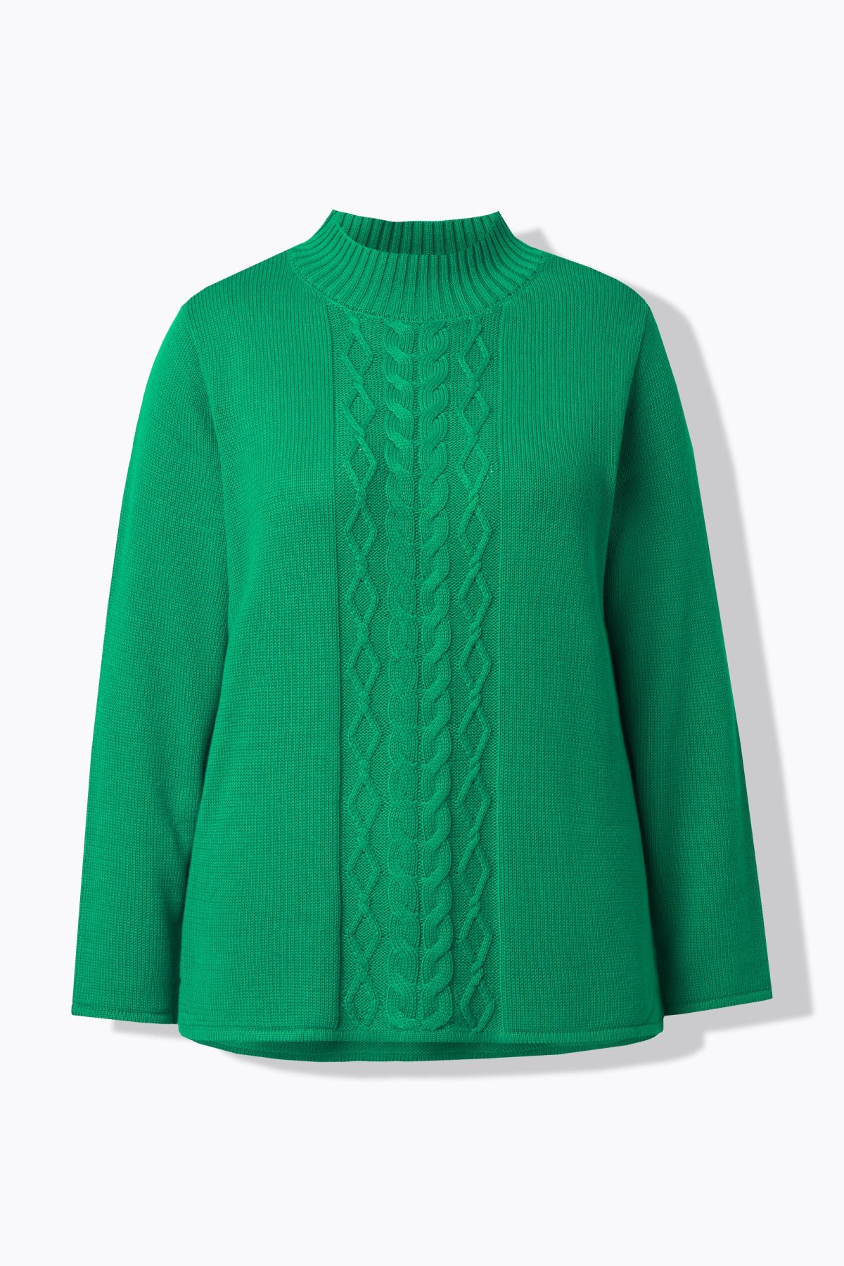 Pullover, bequemer Classic Fit, aus weichem Baumwollstrick, vorne mit Zopfmuster. Kleiner Stehkragen, Langarm, Rippbündchen.