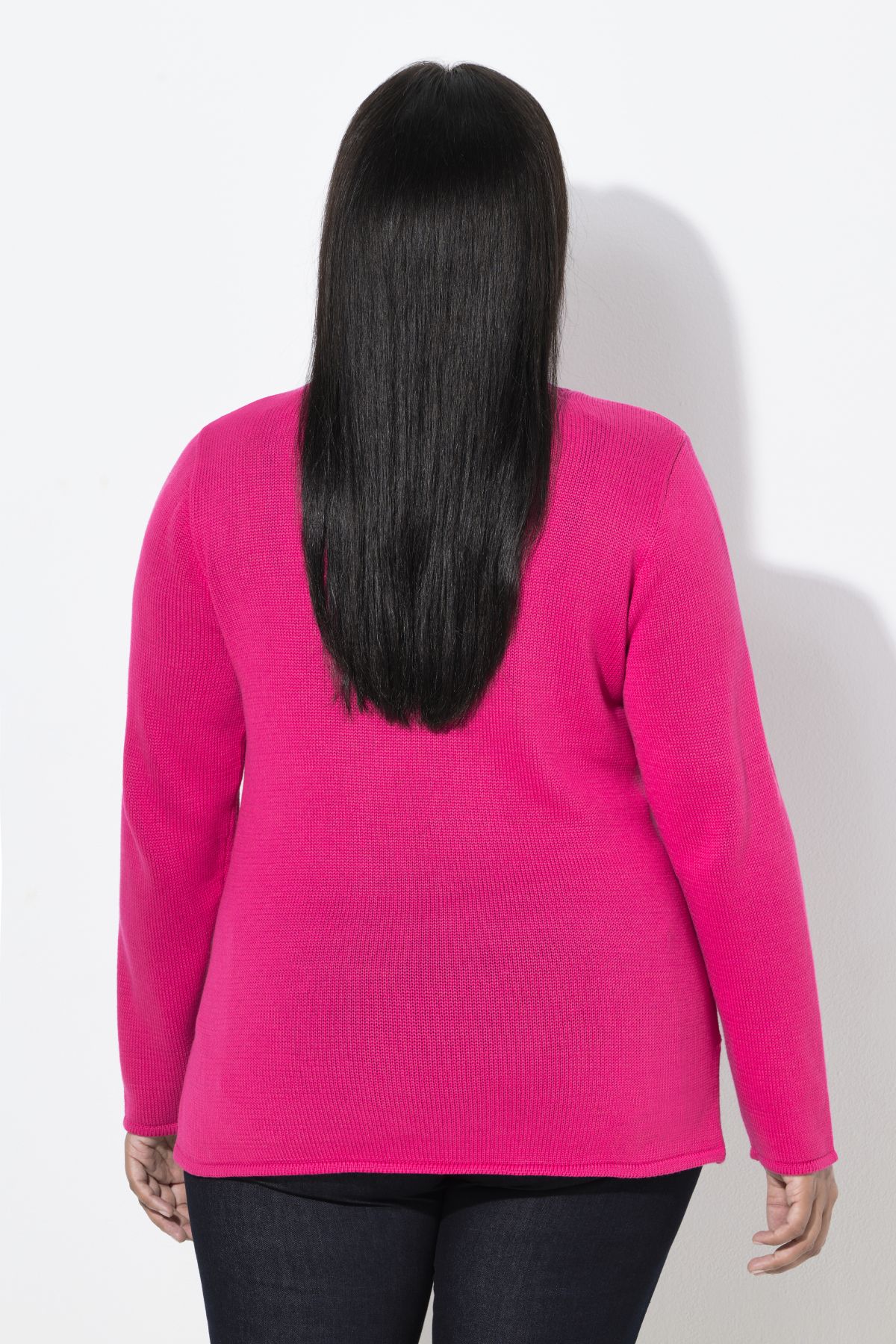 vorne mit Zopfmuster, kleiner Stehkragen, bequeme Passform, Saum und lange Ärmel mit Rippbündchen, weicher Strick, Größenangepasste Länge ca. 68-76 cm.