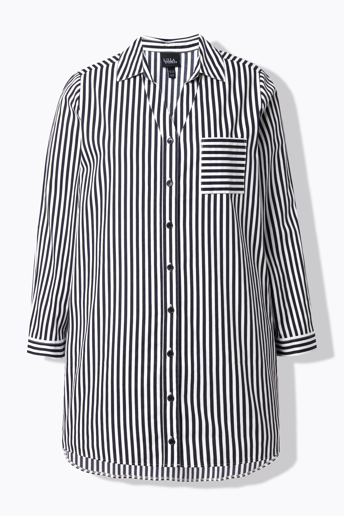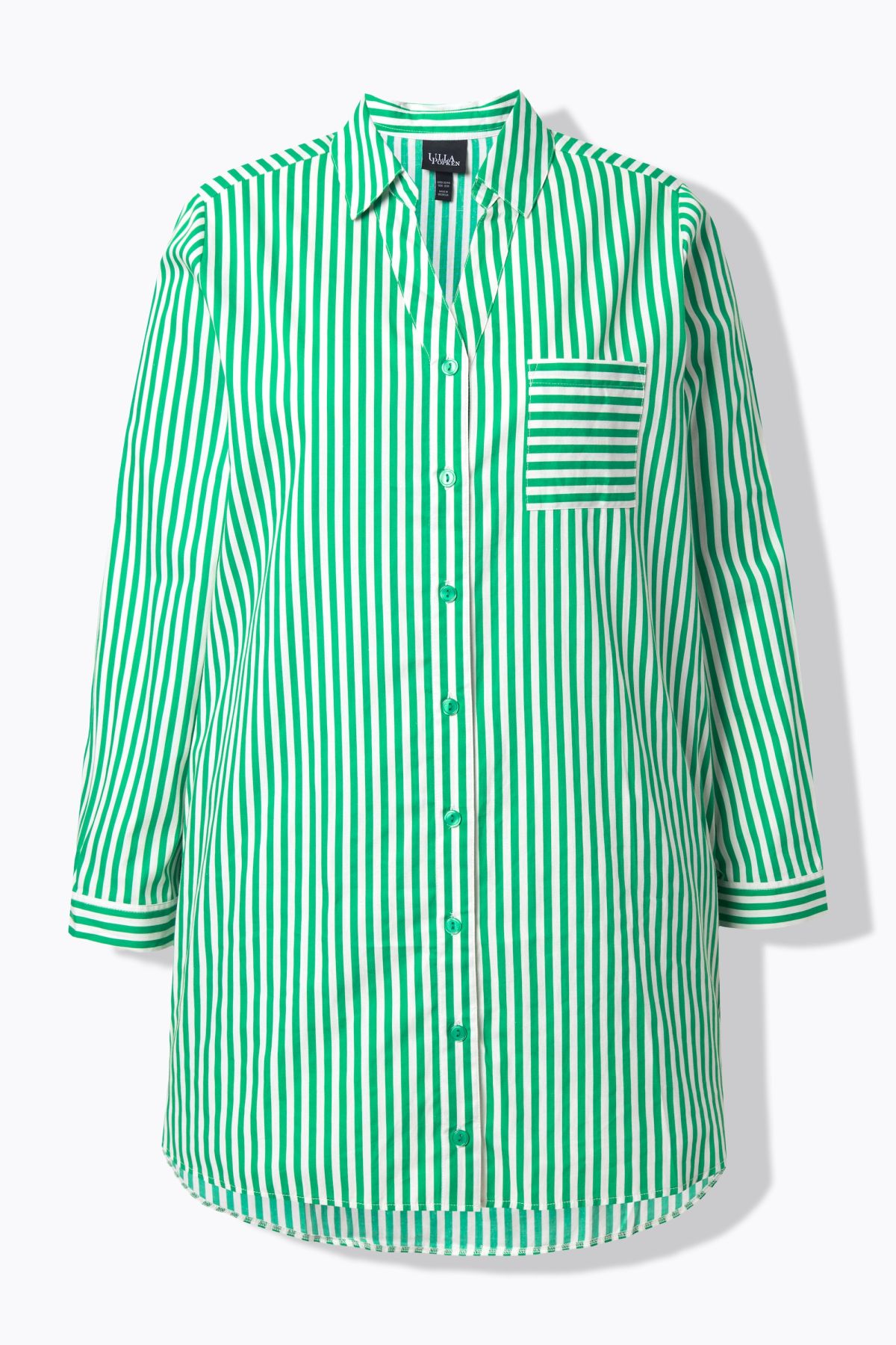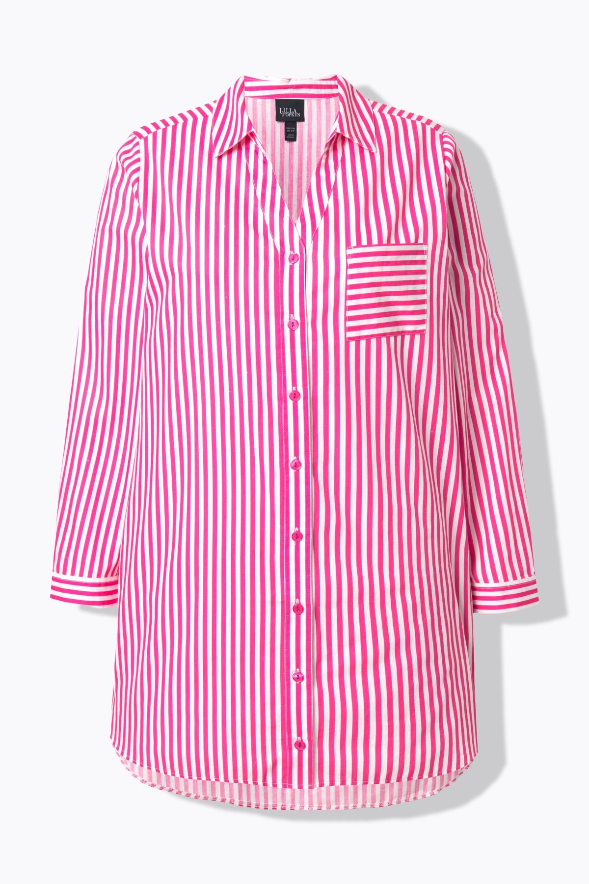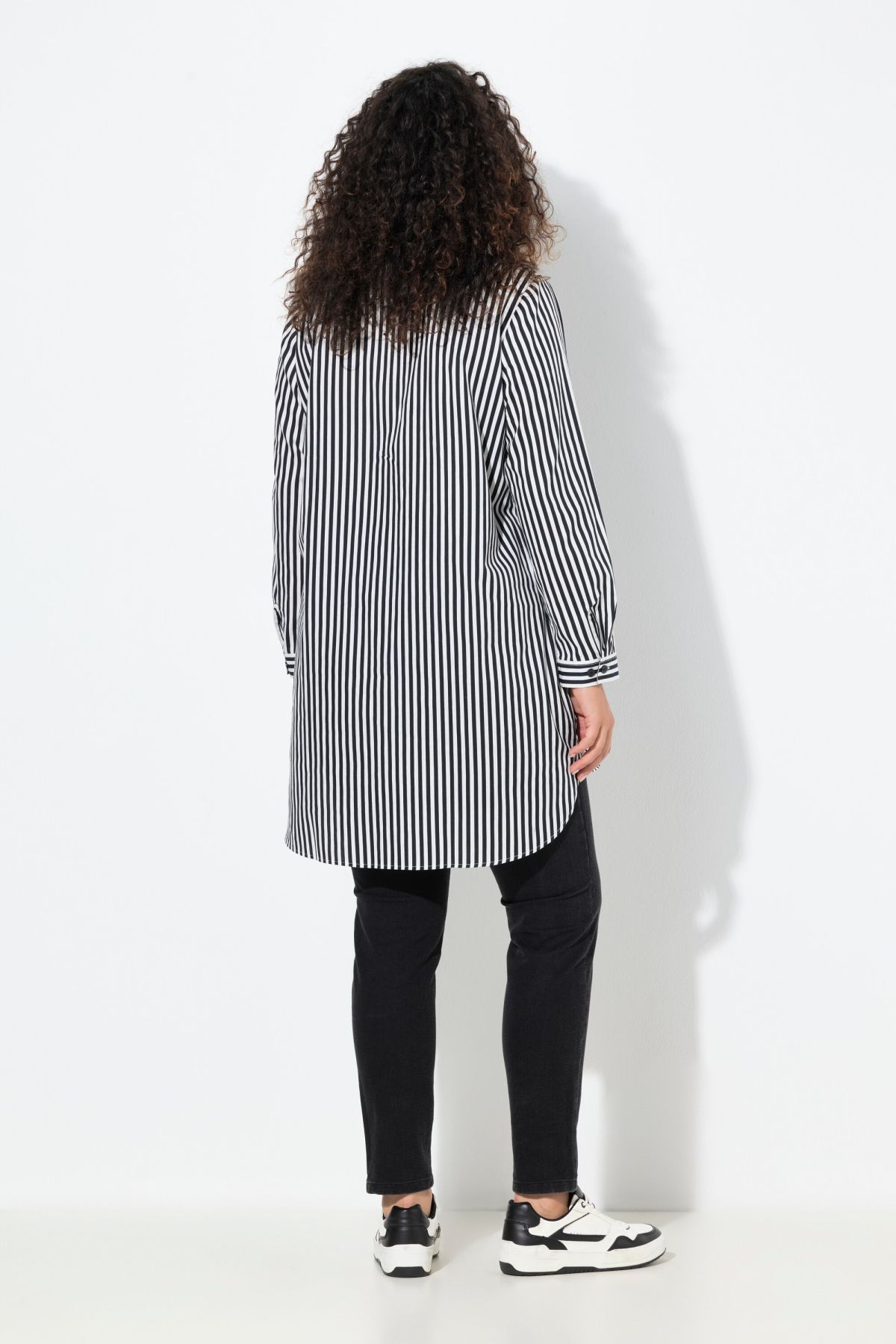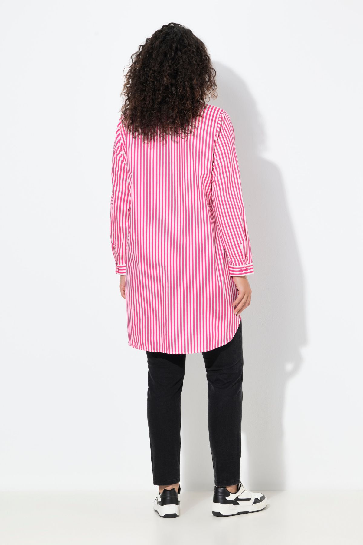 Hemdbluse, längere A-Linie, aus weicher Baumwolle mit Streifen und Brusttasche. Hemdkragen, durchgehende Knopfleiste, Langarm mit Manschetten. Saum, hinten länger, mit Seitenschlitzen für noch mehr Tragekomfort.