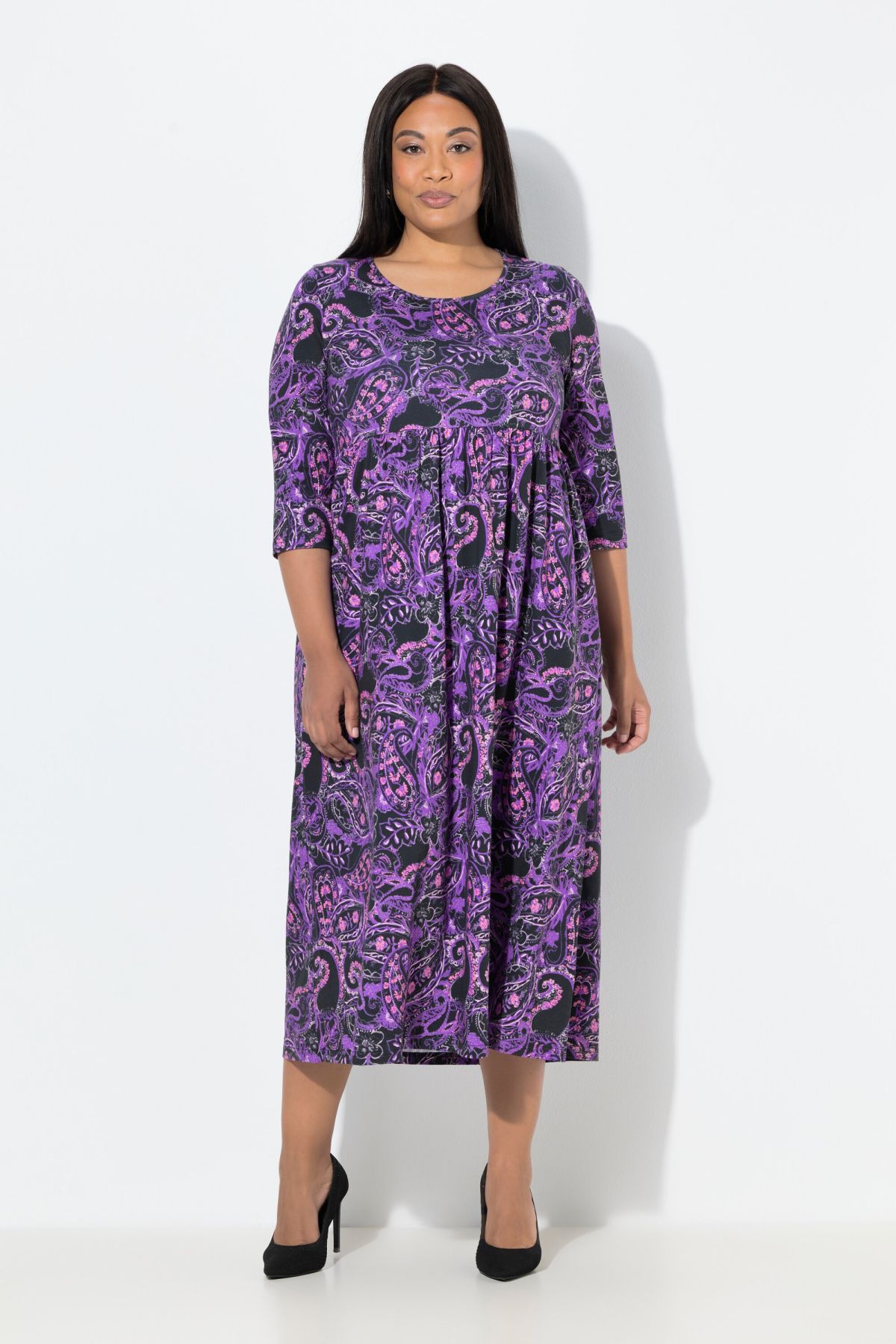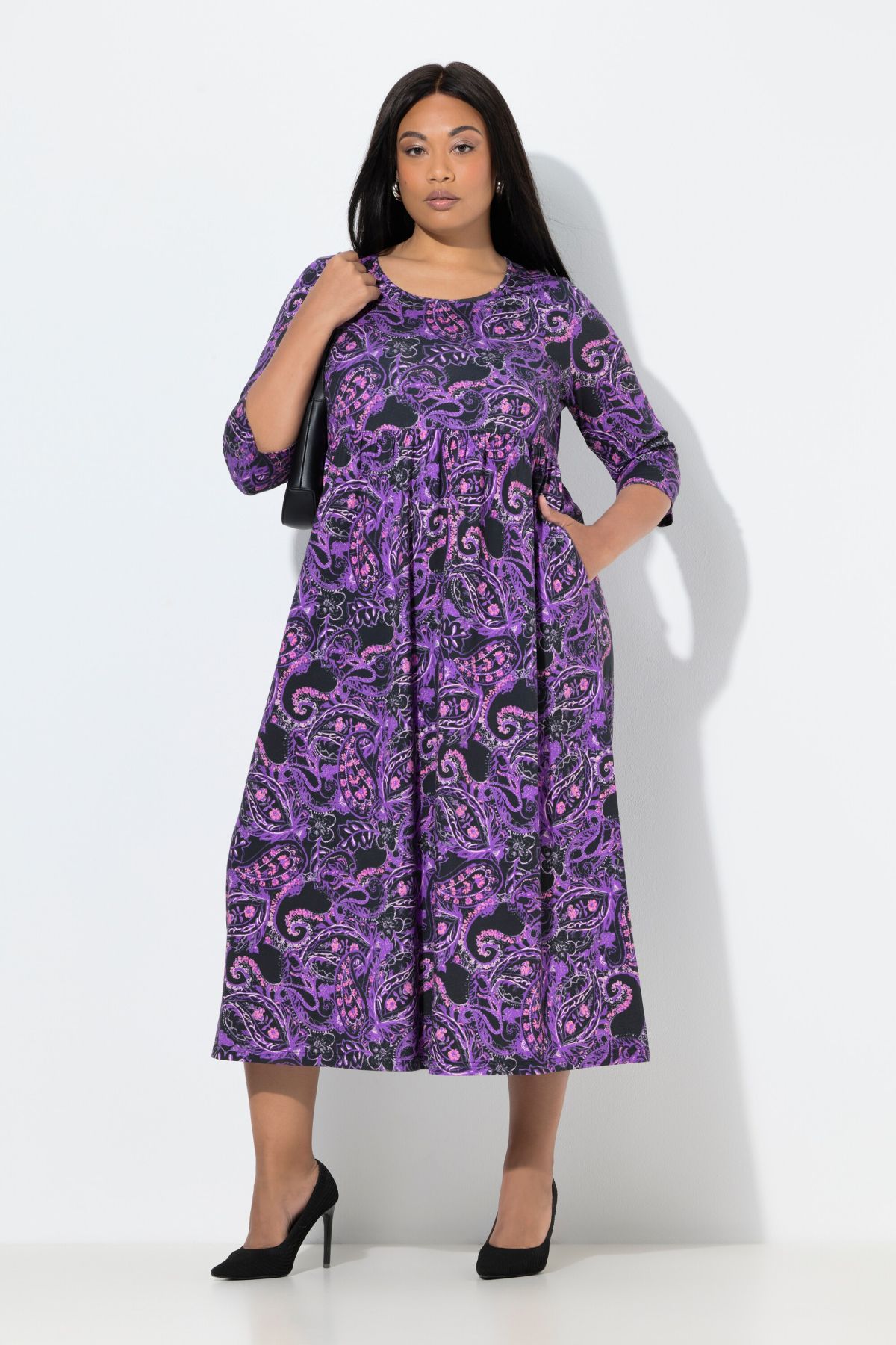 Jersey-Maxikleid, A-Linie, mit Paisleymuster. Bequeme Passform mit Rundhalsausschnitt und elastischer Empirenaht. 3/4-Ärmel, seitliche Nahttaschen.