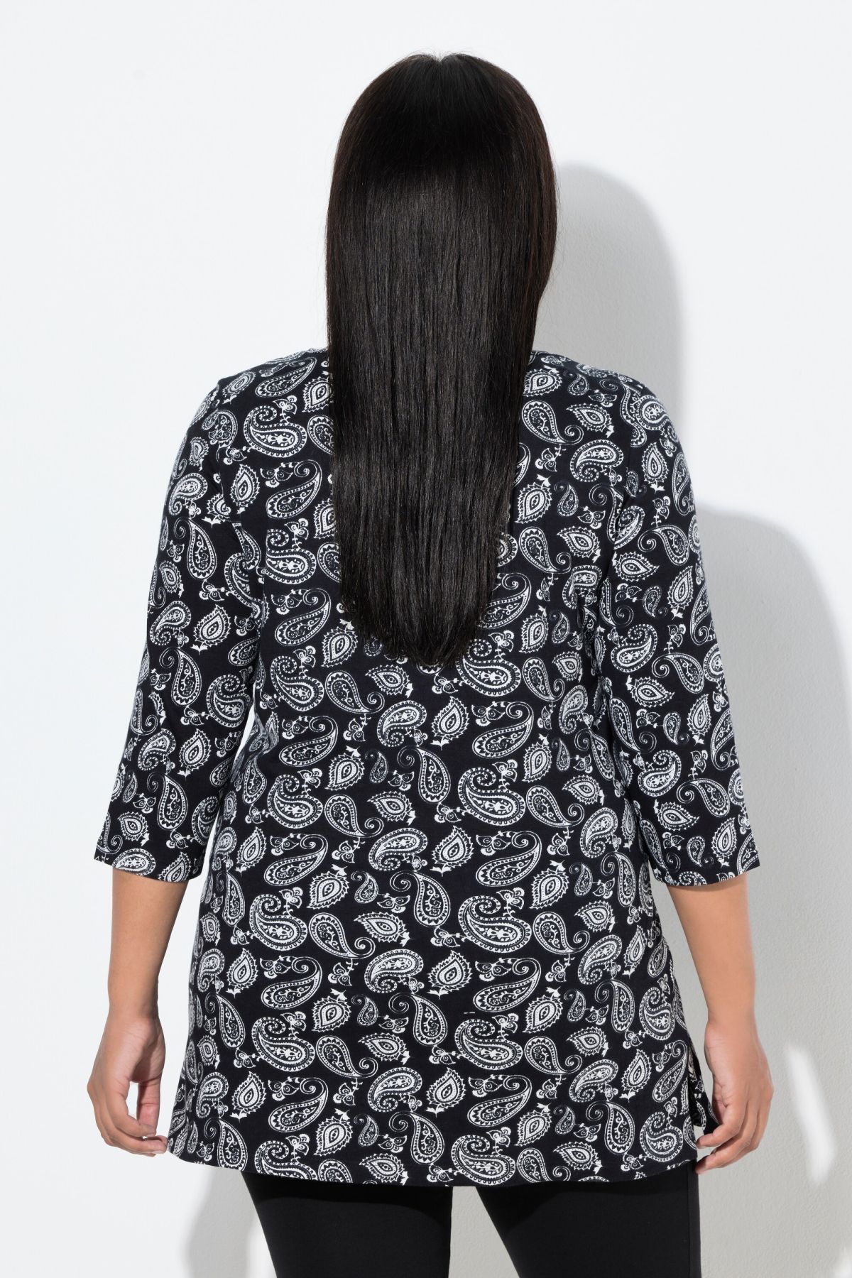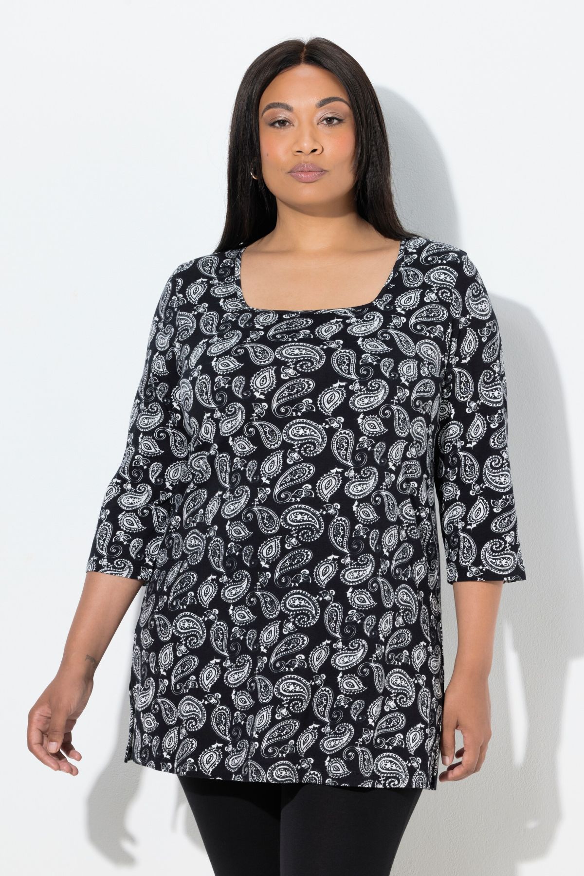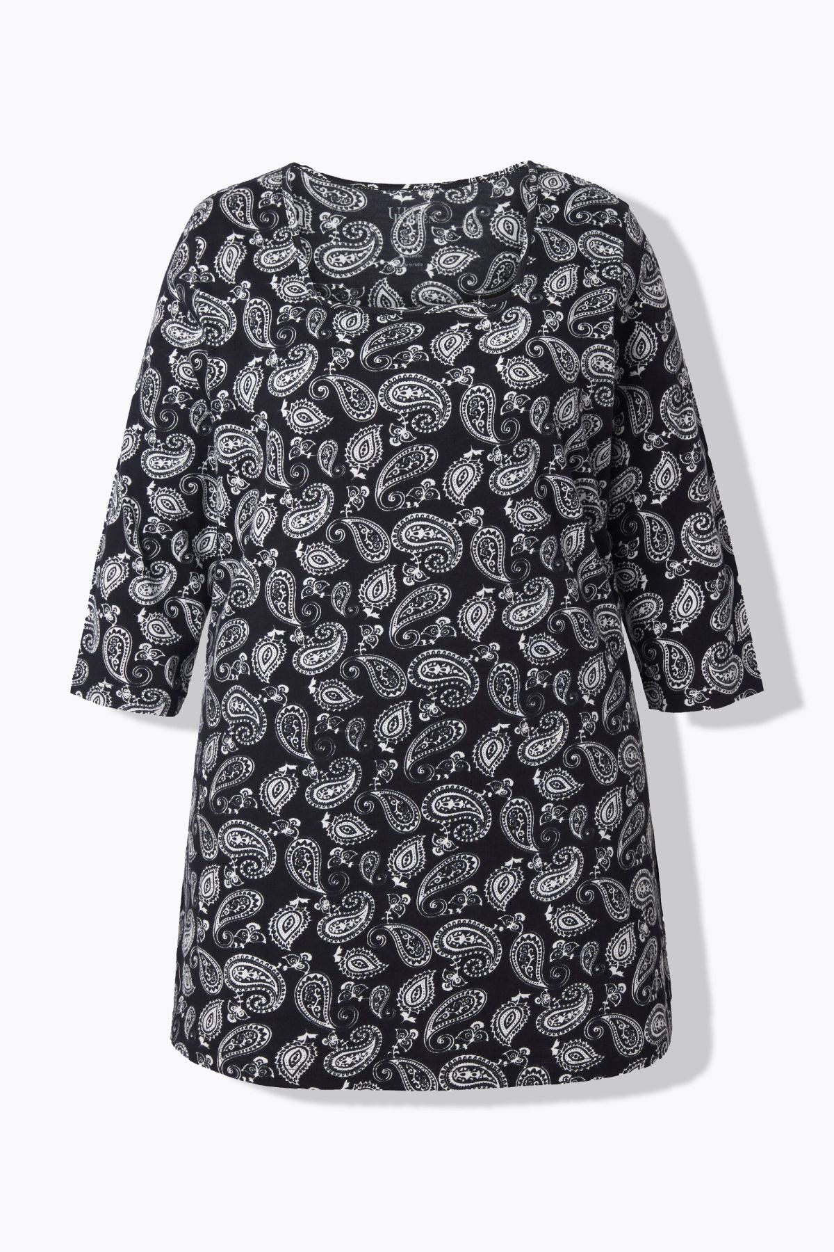 Longshirt, A-Linie, mit Paisleymuster. Carré-Ausschnitt, 3/4-Ärmel. Bequem weiter Saum.