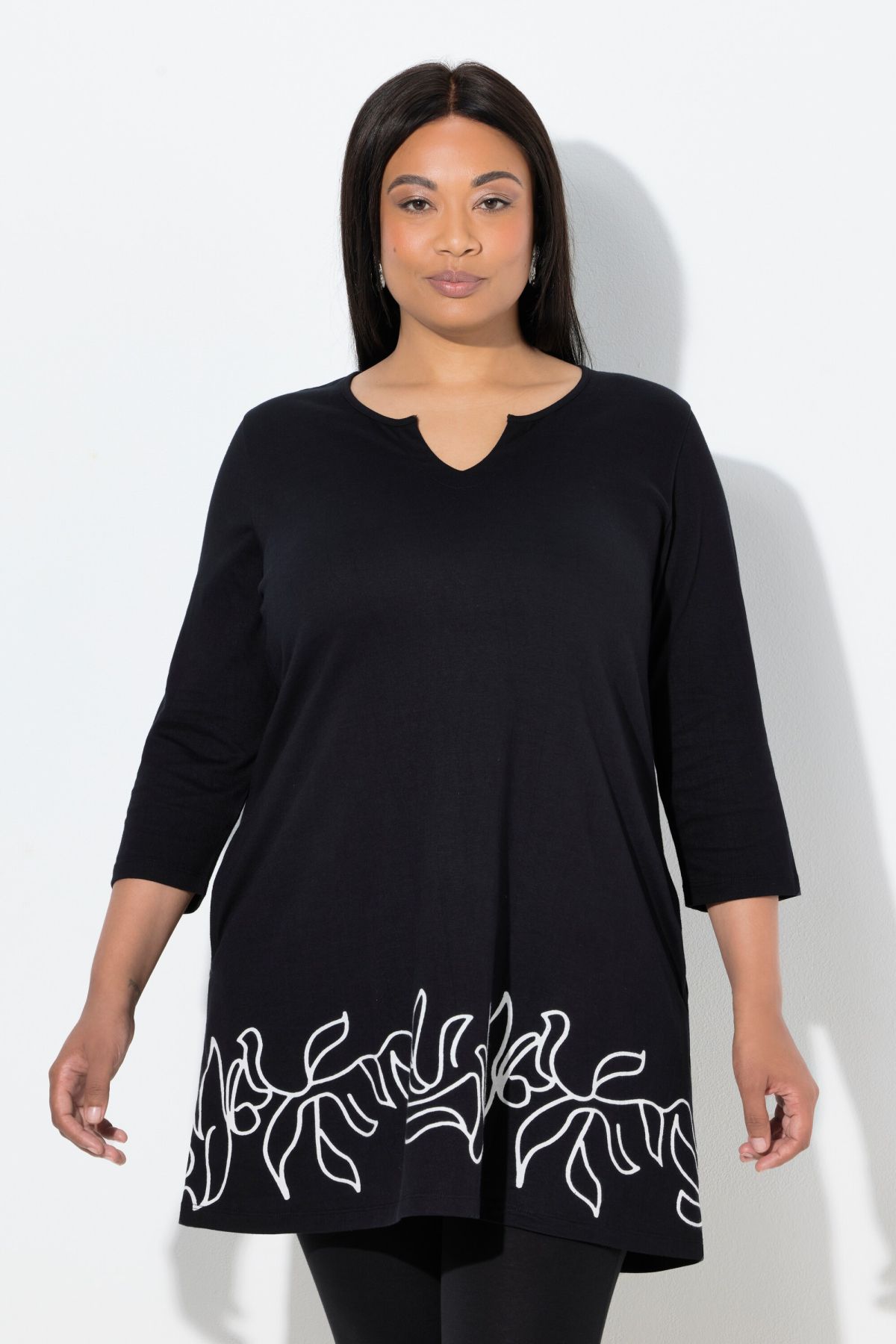 Longshirt, A-Linie, mit gedrucktem Motiv. Tunika-Ausschnitt, 3/4-Ärmel. Bequem weiter Saum.