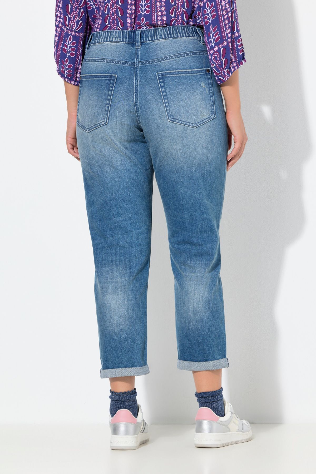 Boyfriend-Jeans, bequemer Boyfriend-Fit, aus angenehm elastischem Denim mit Destroy-Effekten. 5-Pocket-Hose, Komfortbund mit Gürtelschlaufen, Knopf und Reißverschluss.