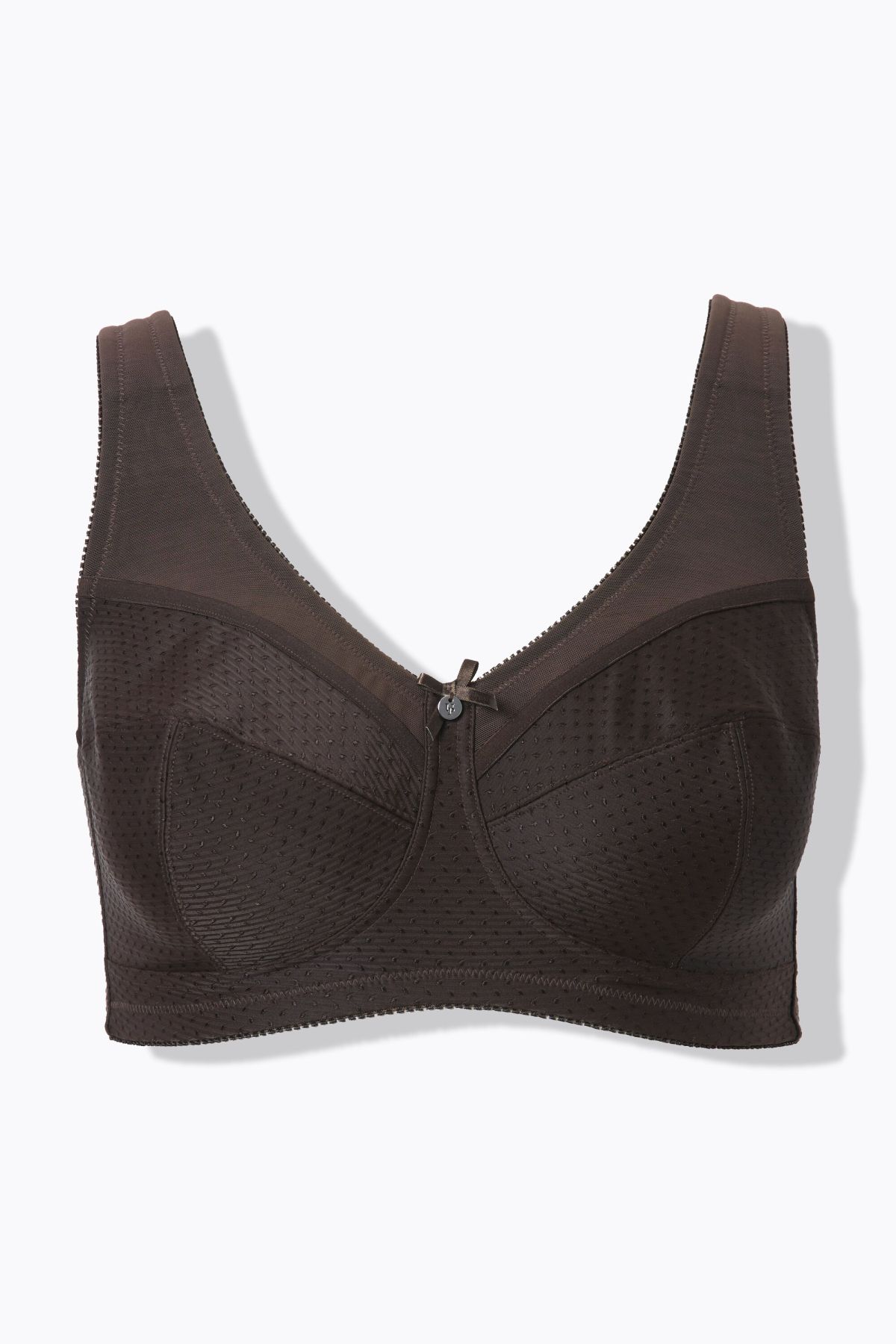 Le soutien-gorge de maintien Kelly sans armatures, finement structuré avec un joli petit nœud à l'entrebonnet assure un bon maintien aux grandes tailles. Les bretelles ultra larges et ajustables en longueur et le dos plus haut empêchent qu'il ne scie la peau. Le soutien-gorge déleste les épaules et le dos. La bande de maintien sous poitrine et les empiècements en filet sur les côtés et sous les bretelles assurent un bon maintien et épousent parfaitement le corps. Un pad supplémentaire dans la coque renforce et relève légèrement la poitrine. OEKO-TEX.& 10;<br>