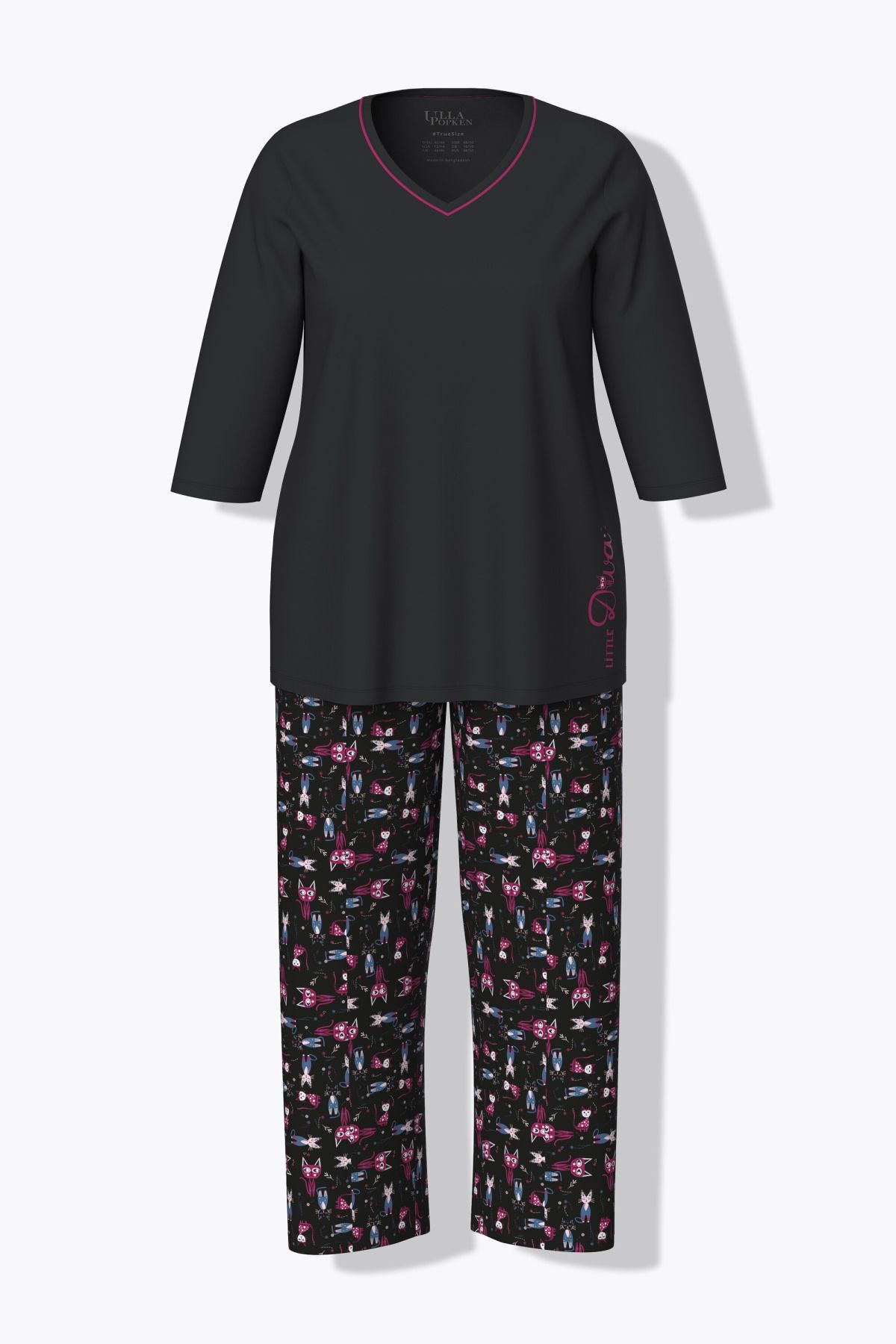 Pyjama motif chats, col en V, manches 3/4 et poches
