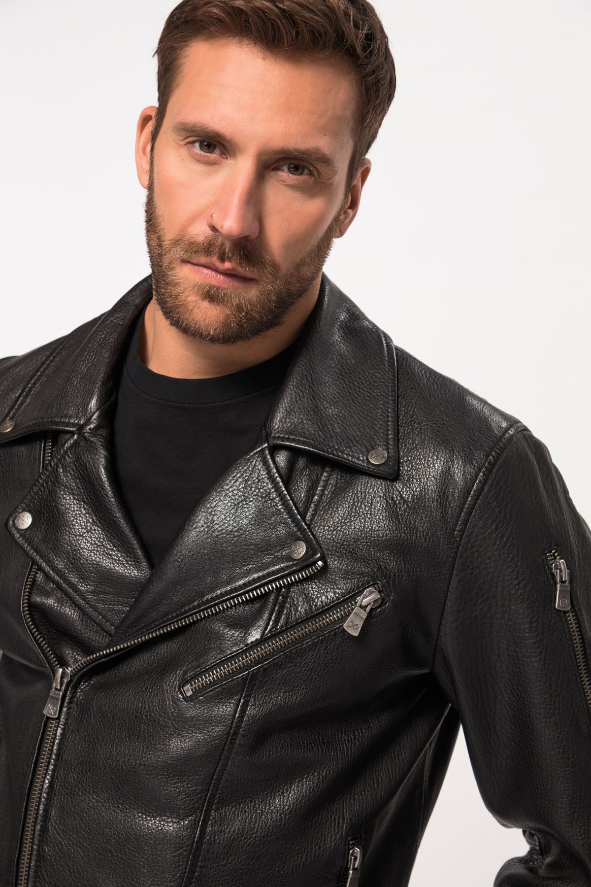 Perfecto en cuir nappa d'agneau, Look motard authentique, Fermeture à glissière métallique, Poche intérieure zippée, Long. entrej. env. 68-79