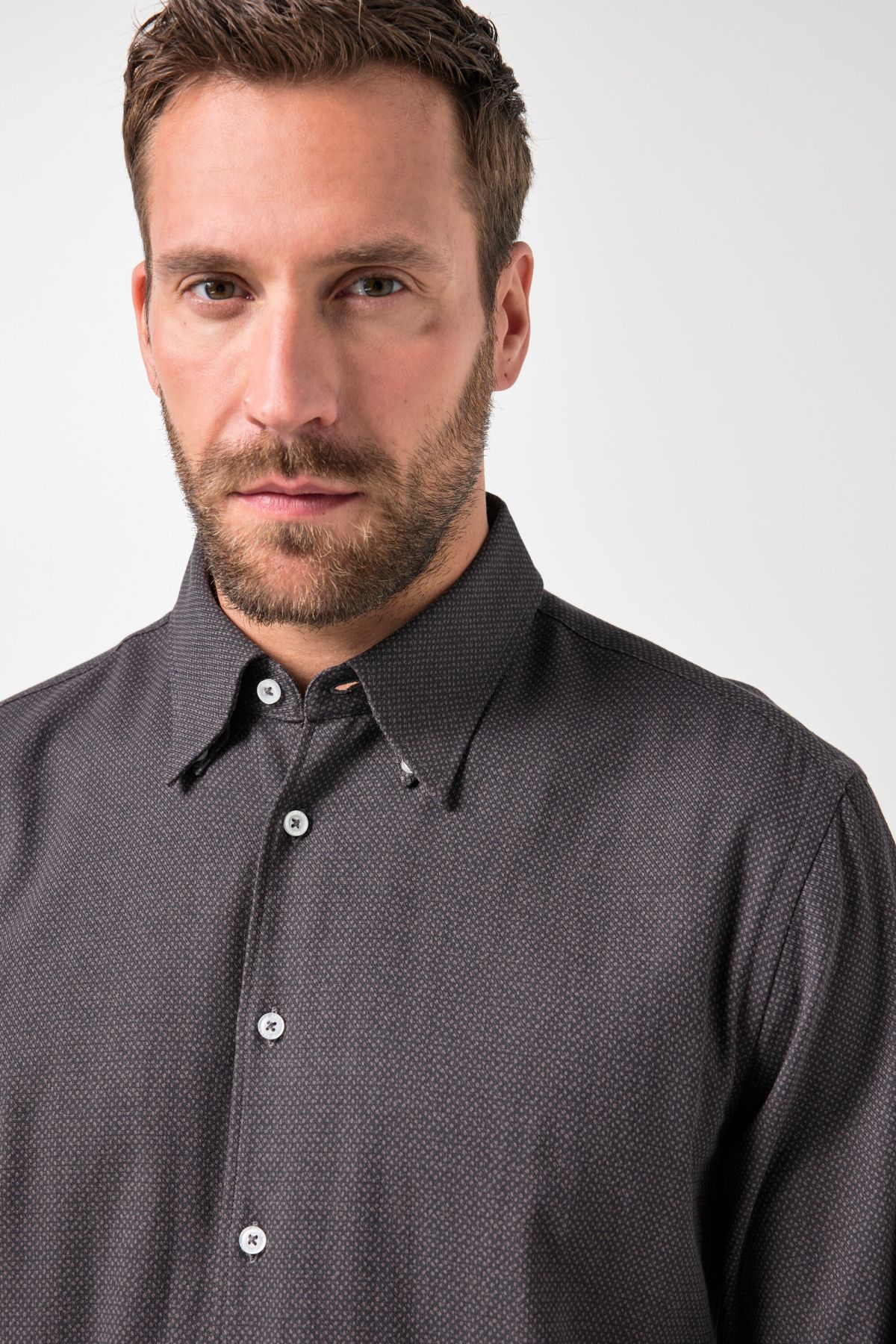 Coupe spéciale jusqu'au 8 XL, Imprimé all-over (intégral) tendance, Coupe Modern Fit, Col à pointes boutonnées (boutons invisibles), Boutons plus grands à partir du 4 XL, Long. selon taille env. 78-92 cm.