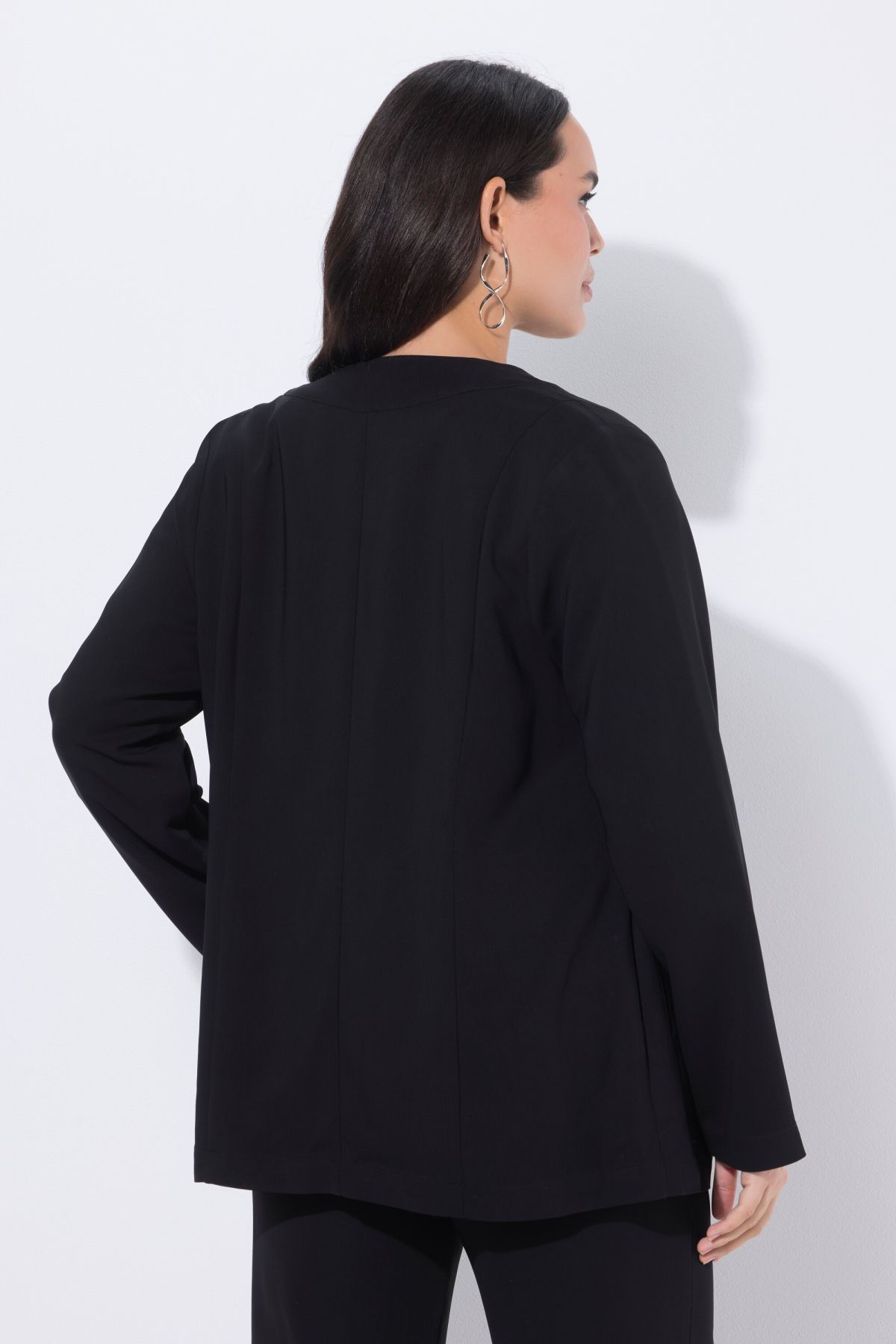 Jacke, leicht taillierter Classic Fit, aus elastischer Viskose-Qualität. Moderne, offene Form mit Schalkragen und dezenten Teilungsnähten. Seitliche Nahttaschen, Langarm. Hochwertige Innenverarbeitung mit Piping. & 10;<br> & 10;<br>Premium-Mode für Dich! & 10;<br>selection by Ulla Popken steht für Qualität und tragbare Eleganz. Klassiker verwandelt selection by Ulla Popken in moderne Highlights aus hochwertigen Materialien mit aufwendigen Drucken und Details – perfekt für jeden Tag und besondere Anlässe! & 10;<br>& 10;<br>& 10;