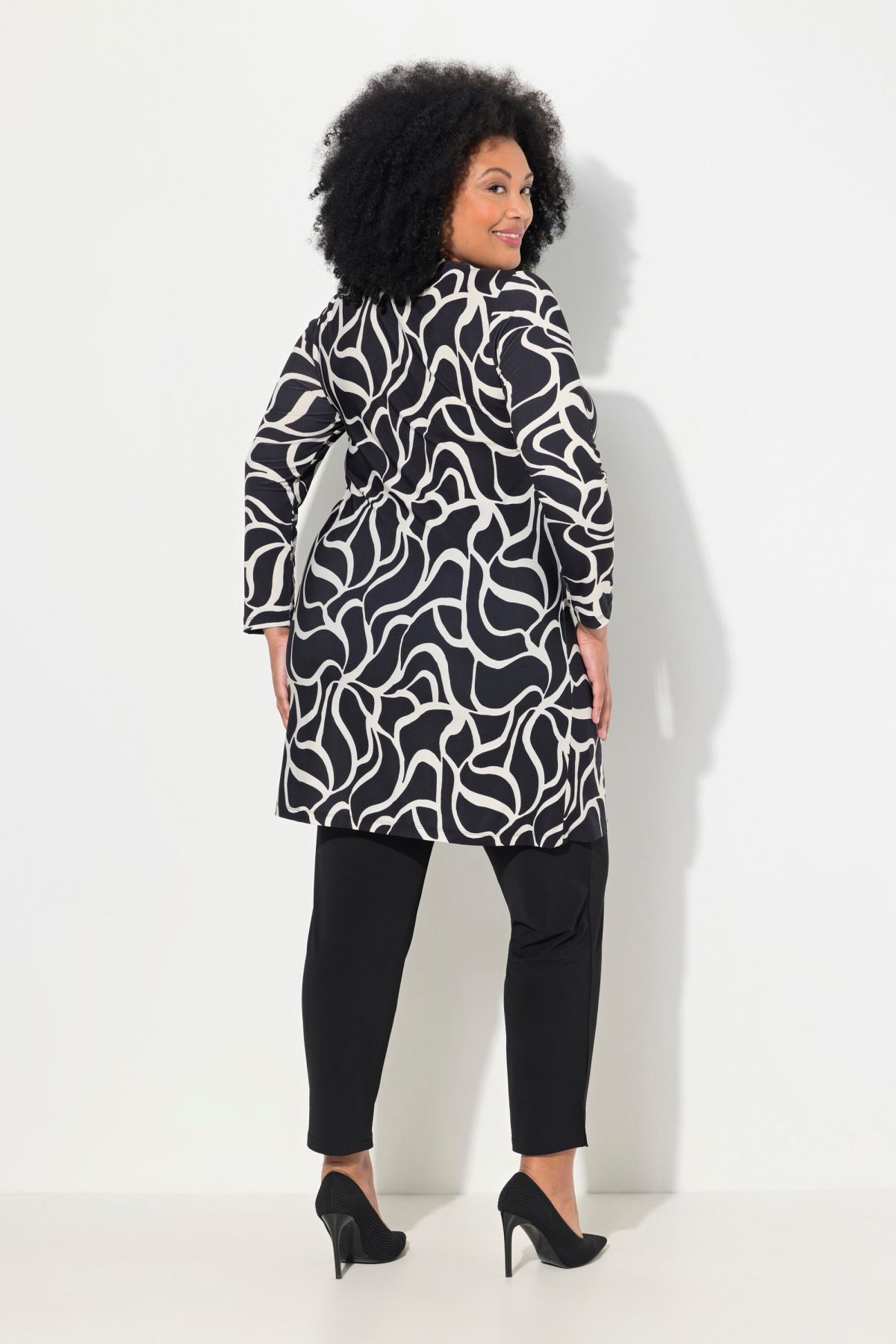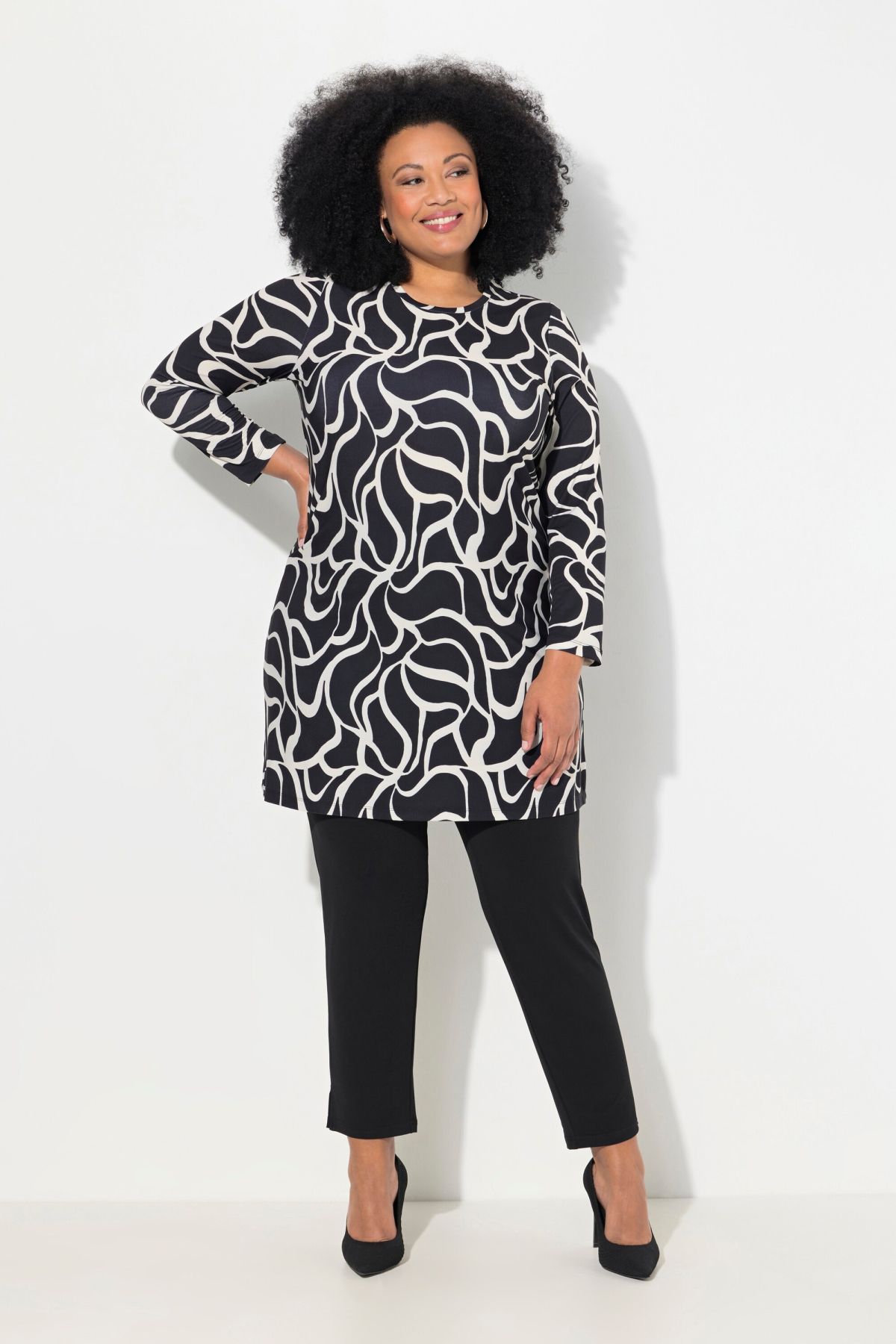 Imprimé tendance, Décolleté rond, Coupe évasée et longue, avec base agréablement large, Manches longues, Jersey ultra-lisse, Long. env. 91 cm.