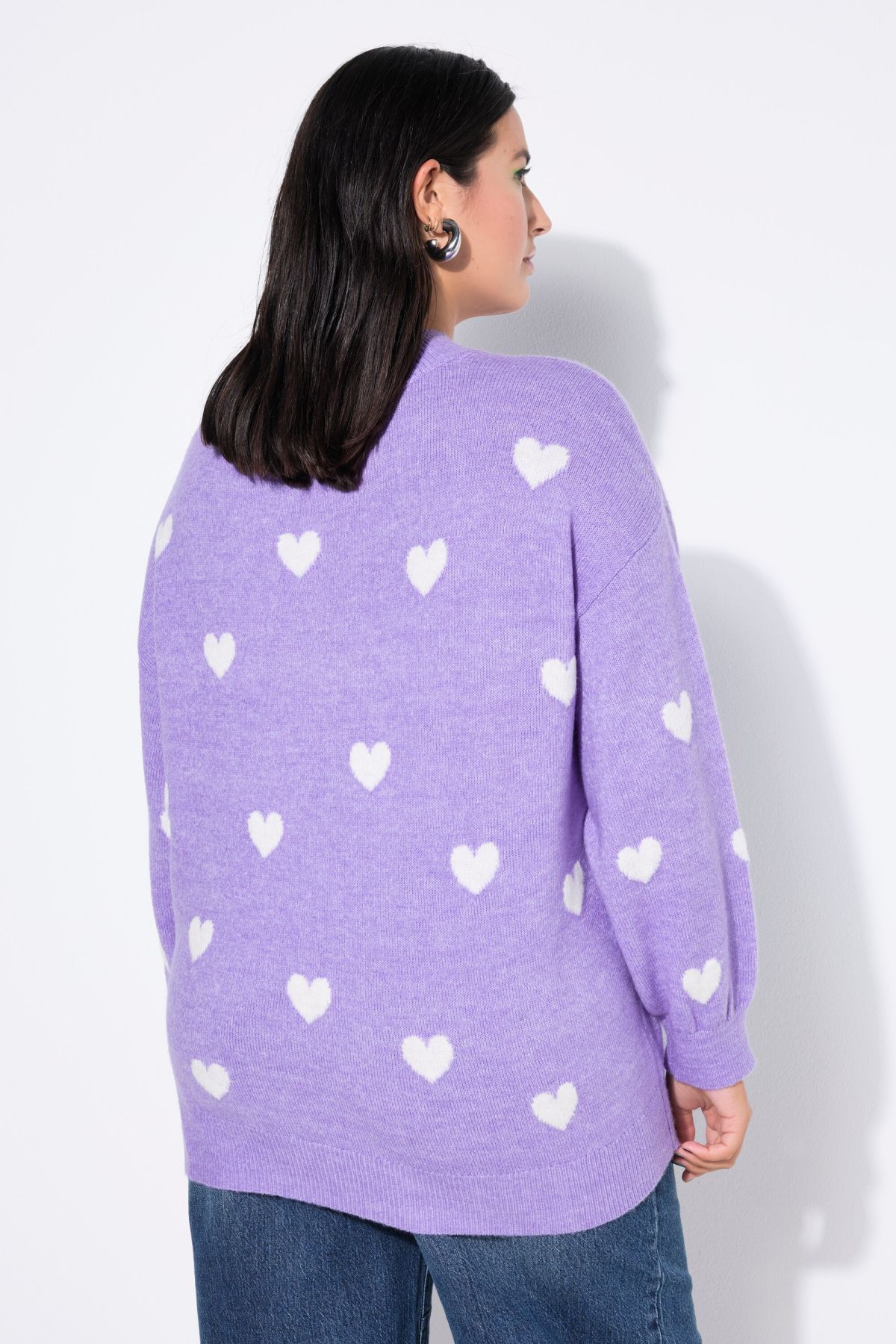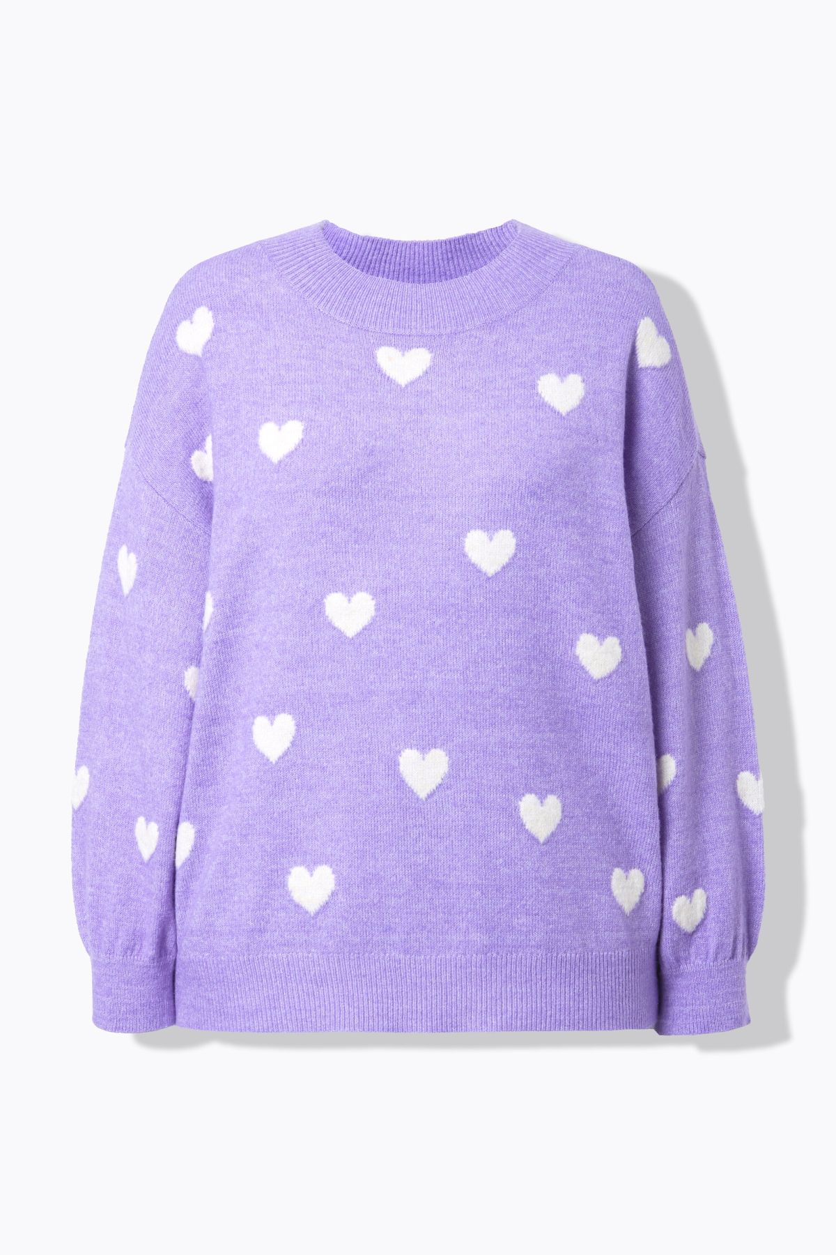 Coupe oversize, Maille fine avec cœurs, Col rond, Finitions bords-côtes, Long. selon taille env. 68-76 cm.