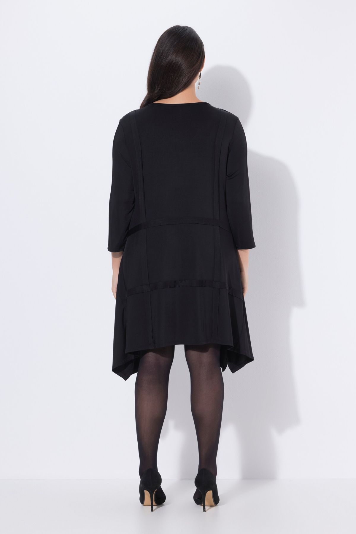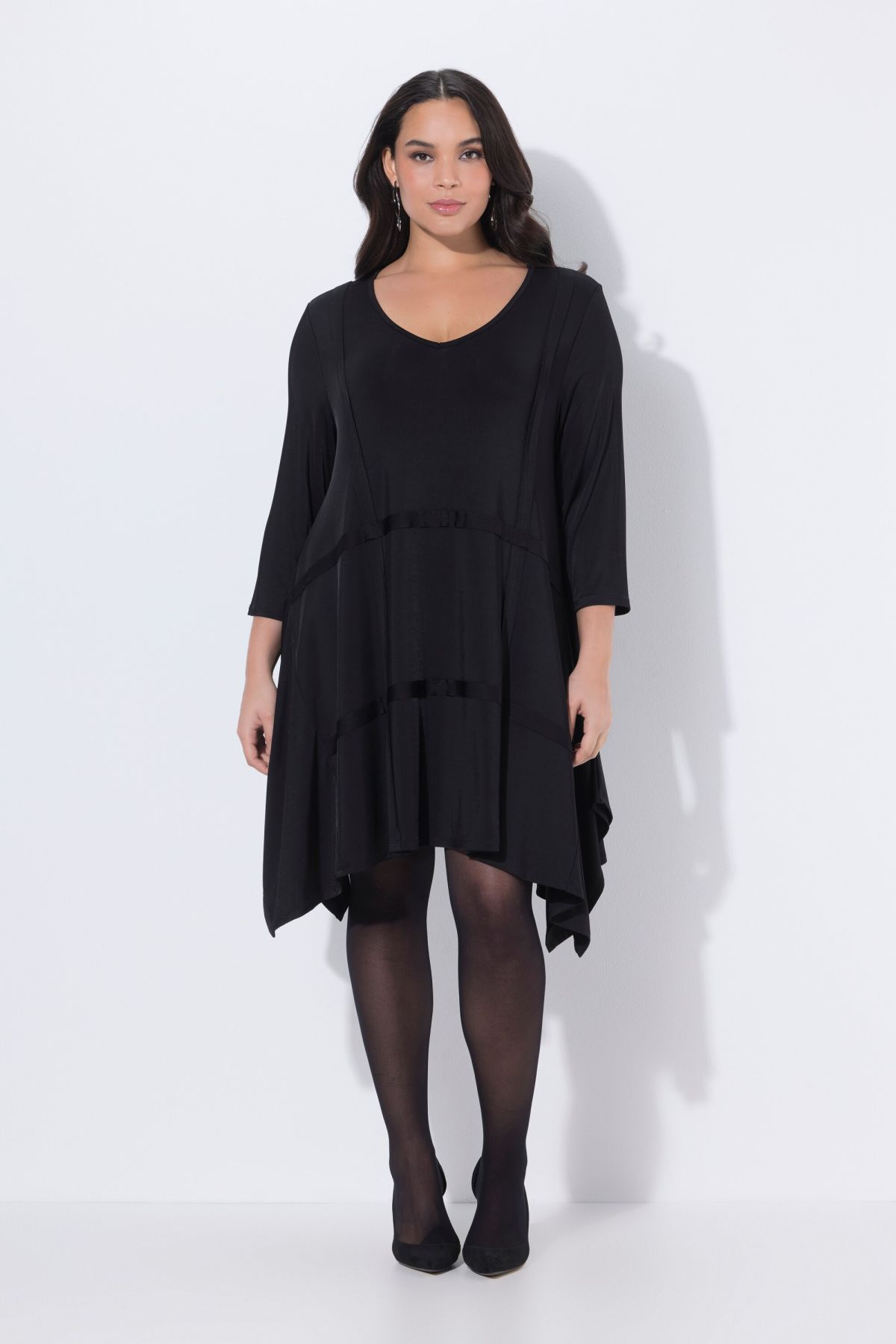 Robe en point de Rome, coupe évasée, décolleté en V, manches 3/4 et poches
