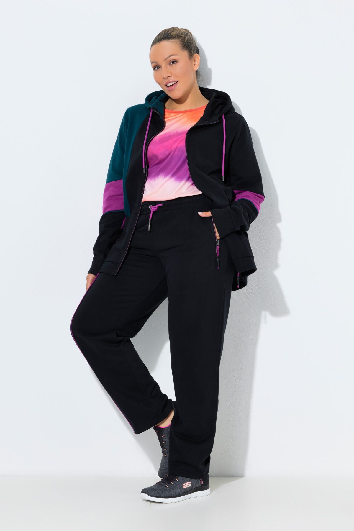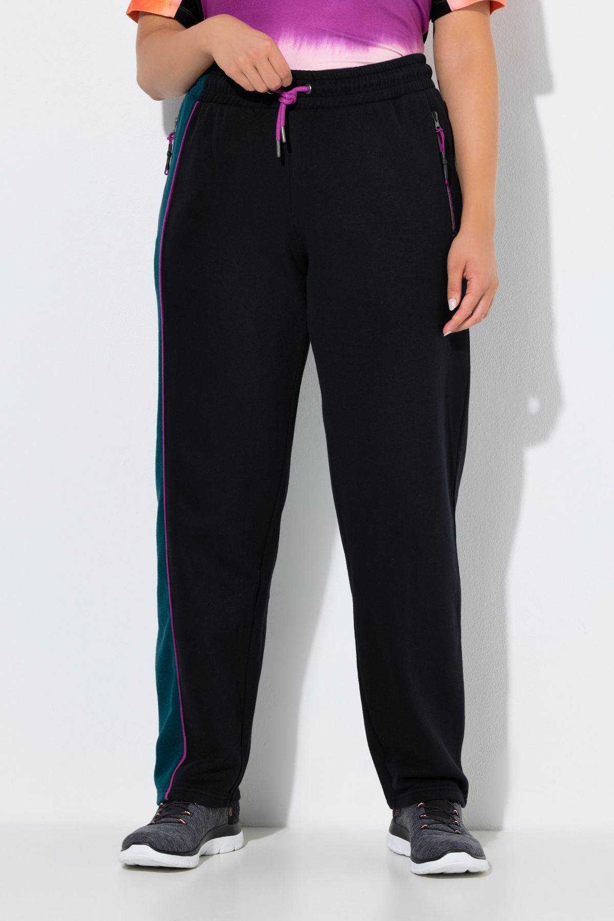 modisches Colorblocking-Design, praktische Reißverschlusstaschen, sportive Passform, Elastikbund mit Kordel, extraweiche Sweatqualität, Schrittlänge ca. 78 cm.