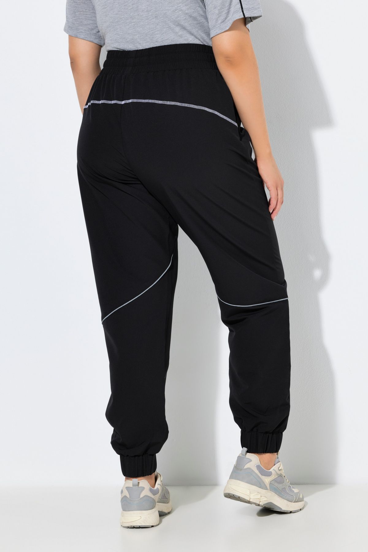 Funktions-Trainingshose, bequemer Loose Fit, mit Dreifach-Funktion: wasserabweisend, windabweisend, atmungsaktiv. Modische Reflektor-Paspel. Elastikbund mit Kordel, 2 Taschen. Elastischer Saum, sitzt immer bequem. Hergestellt mit recyceltem Polyester. OEKO-TEX.