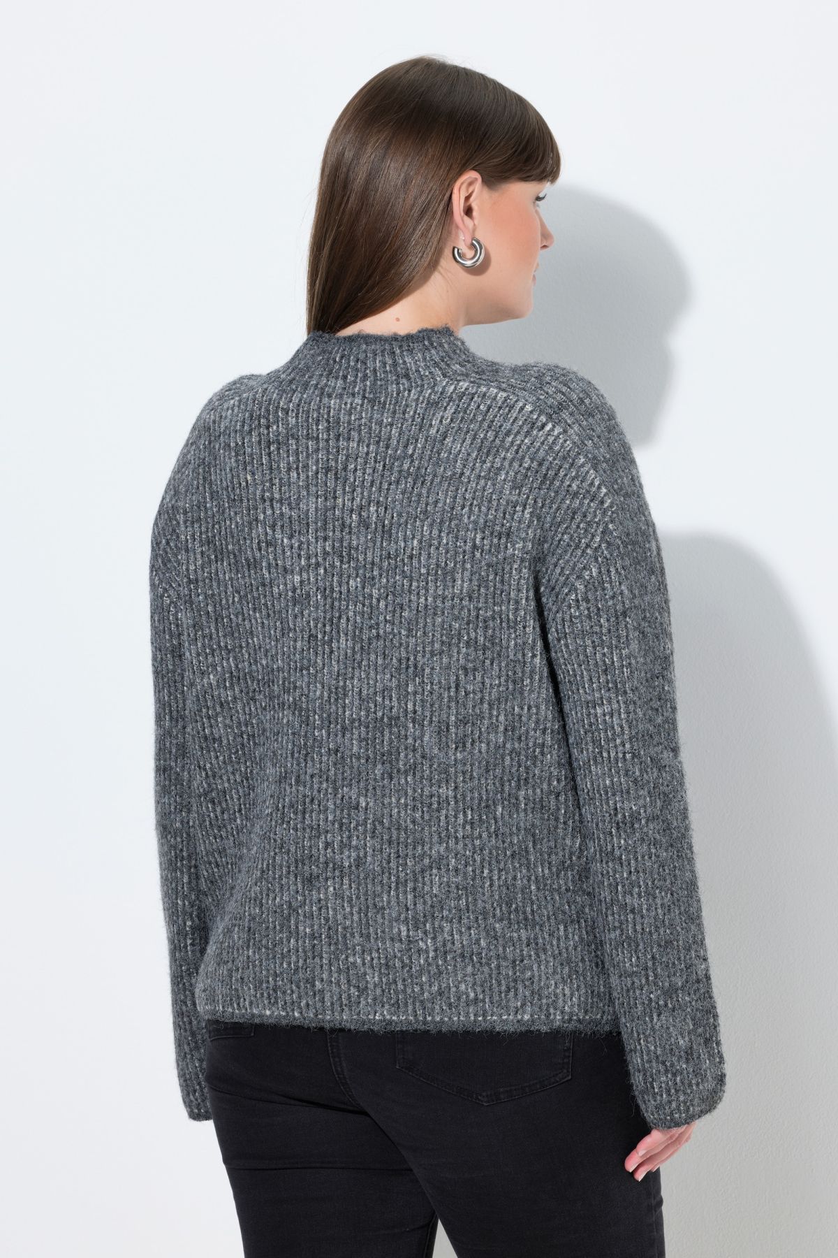 Rayures tendance, Col montant, Coupe évasée confortable, avec fentes sur les côtés, Manches longues avec finitions bords-côtes, Laine mélangée de très grande qualité et extrêmement douce, Long entrej env. 68-76