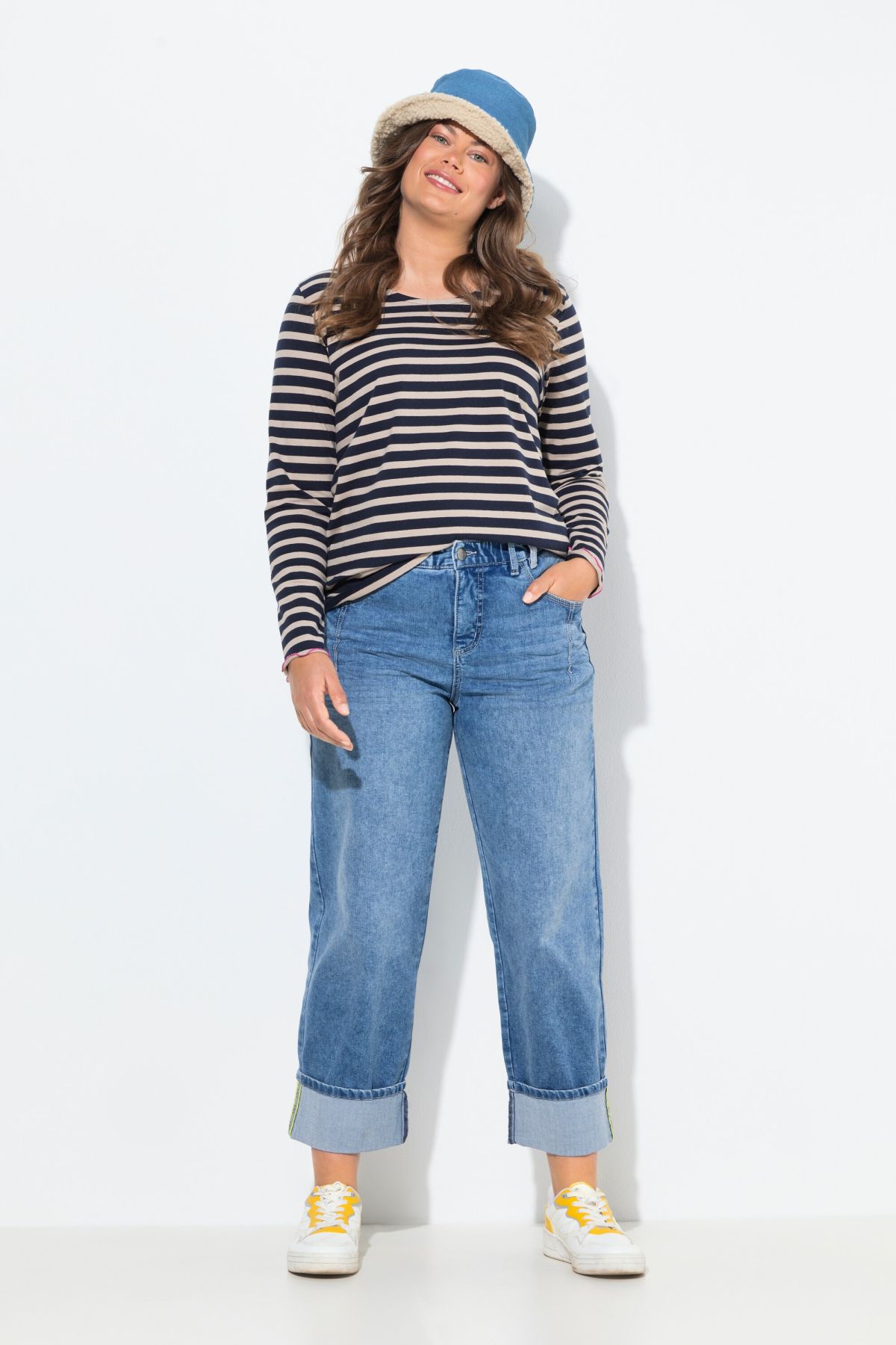 LAURASØN THE NORDIC ALL-WEATHER BRAND, Coupe Wide Leg, Taille élastique, Jambe avec revers, Entrej. env. 70 cm
