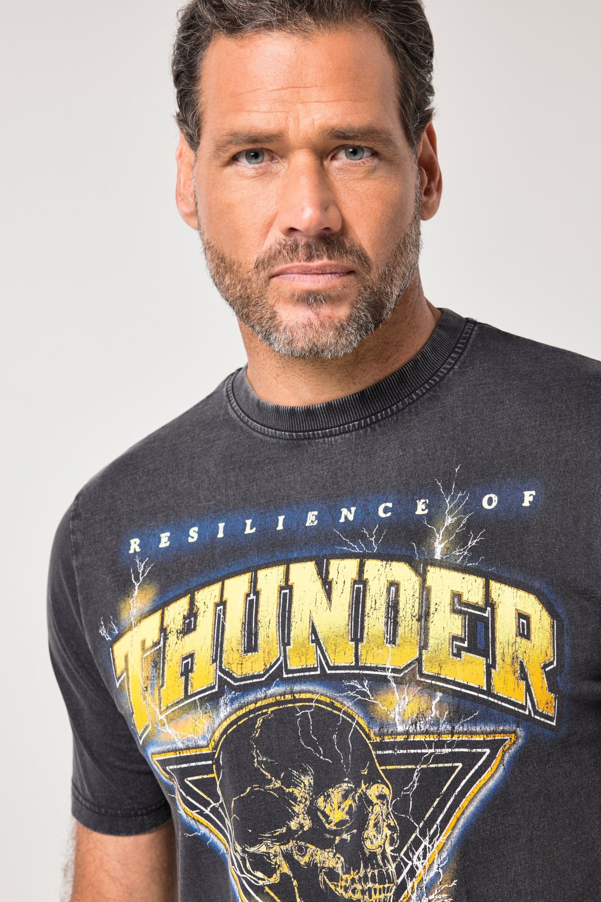 Coupe spéciale jusqu'au 8 XL, Style vintage - délavage acid washed, Imprimé sur la poitrine, Manches courtes, Long. selon taille env. 74-86 cm.