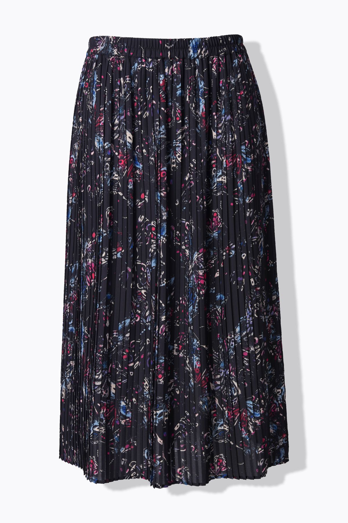 aus luftigem Plissee, dekoratives Schmetterlingsmuster, A-Linie mit angenehmer Saumweite, bequemer Elastikbund, blickdichtes Komplettfutter, Länge ca. 84 cm.