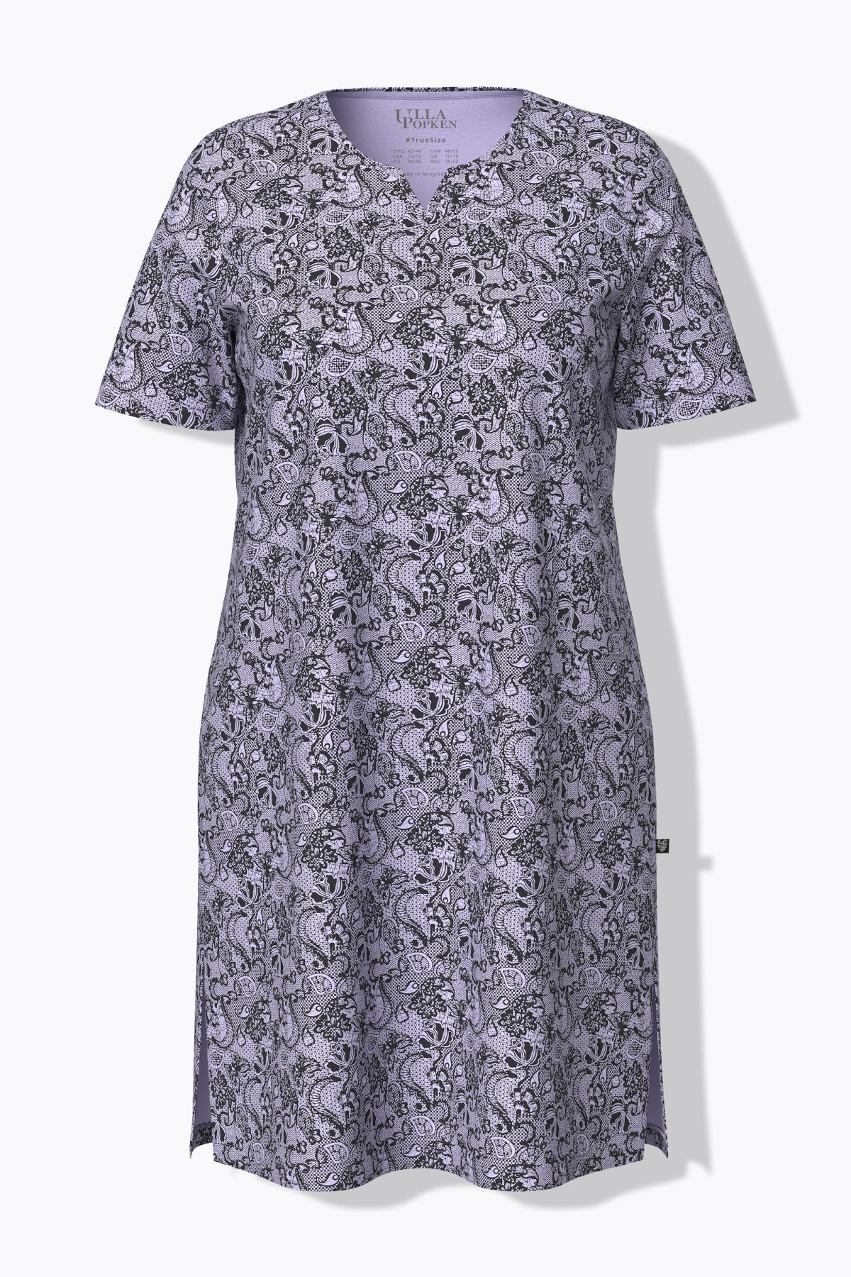 Bigshirts im 2er-Pack, bequeme Passform. 1 x mit Herzausschnitt und elegantem französischen Druck mit Glitzersteinchen am Saum. 1 x mit passendem Muster und Tunika-Ausschnitt. Beide Bigshirts mit Halbarm und Seitenschlitzen für noch mehr Tragekomfort.