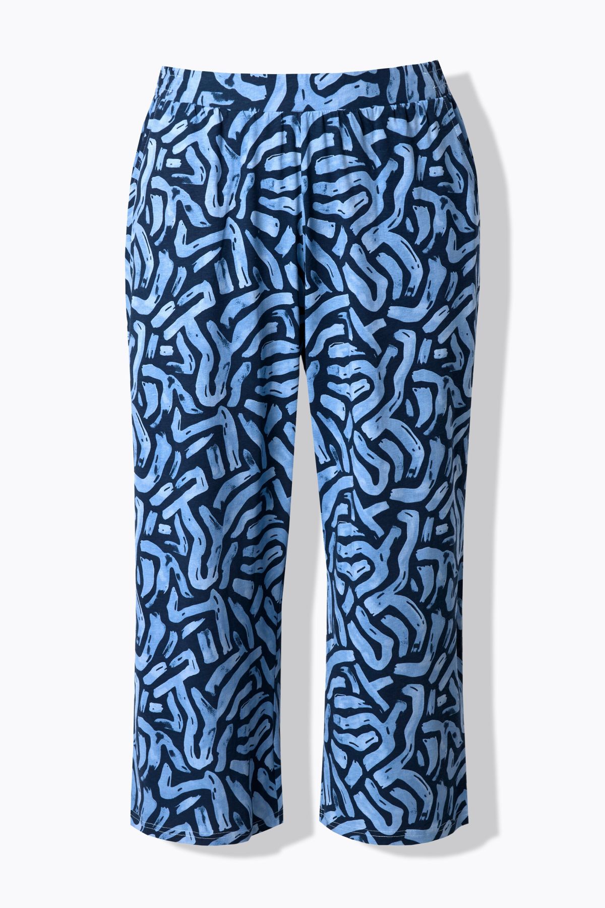 weicher Jersey mit abstraktem Muster, knielanges, weites Bein, teilelastischer Bund, seitliche Nahttaschen, nachhaltige Biobaumwolle, Schrittlänge ca. 60 cm.
