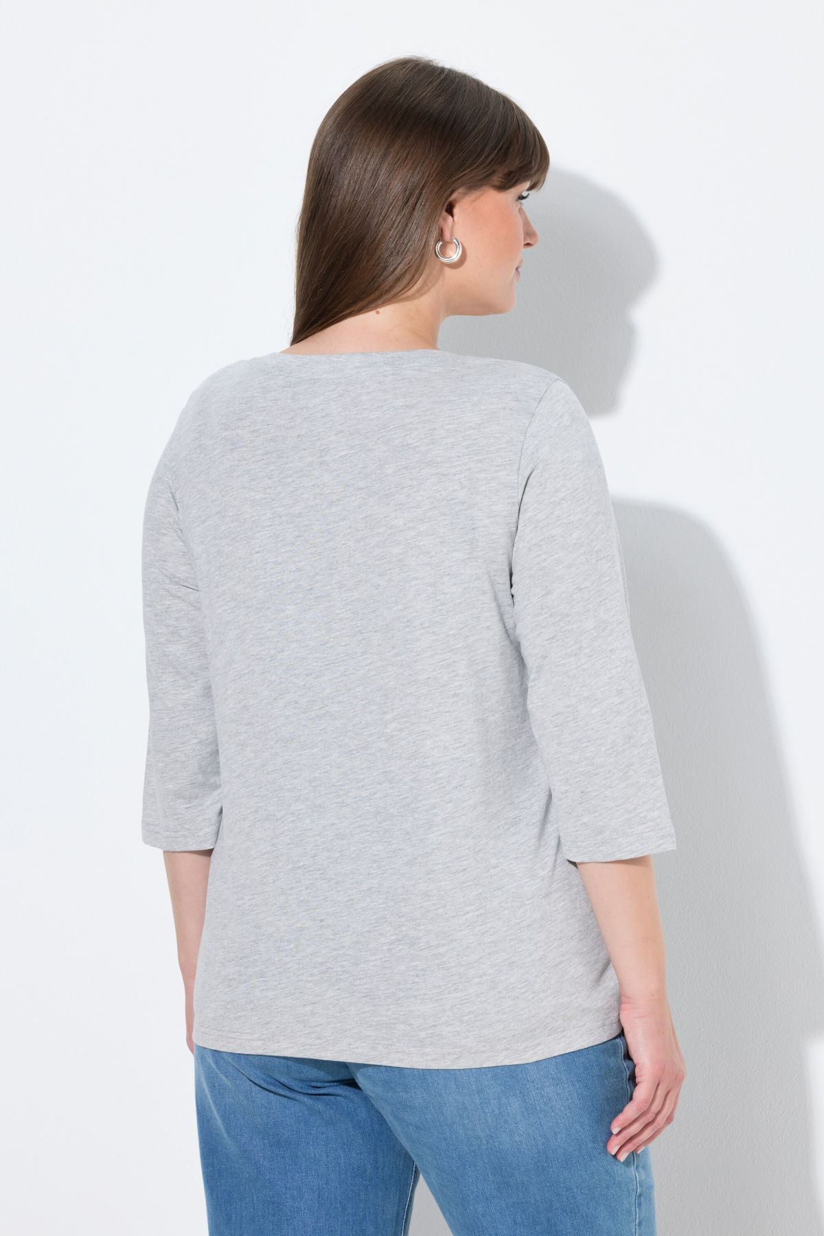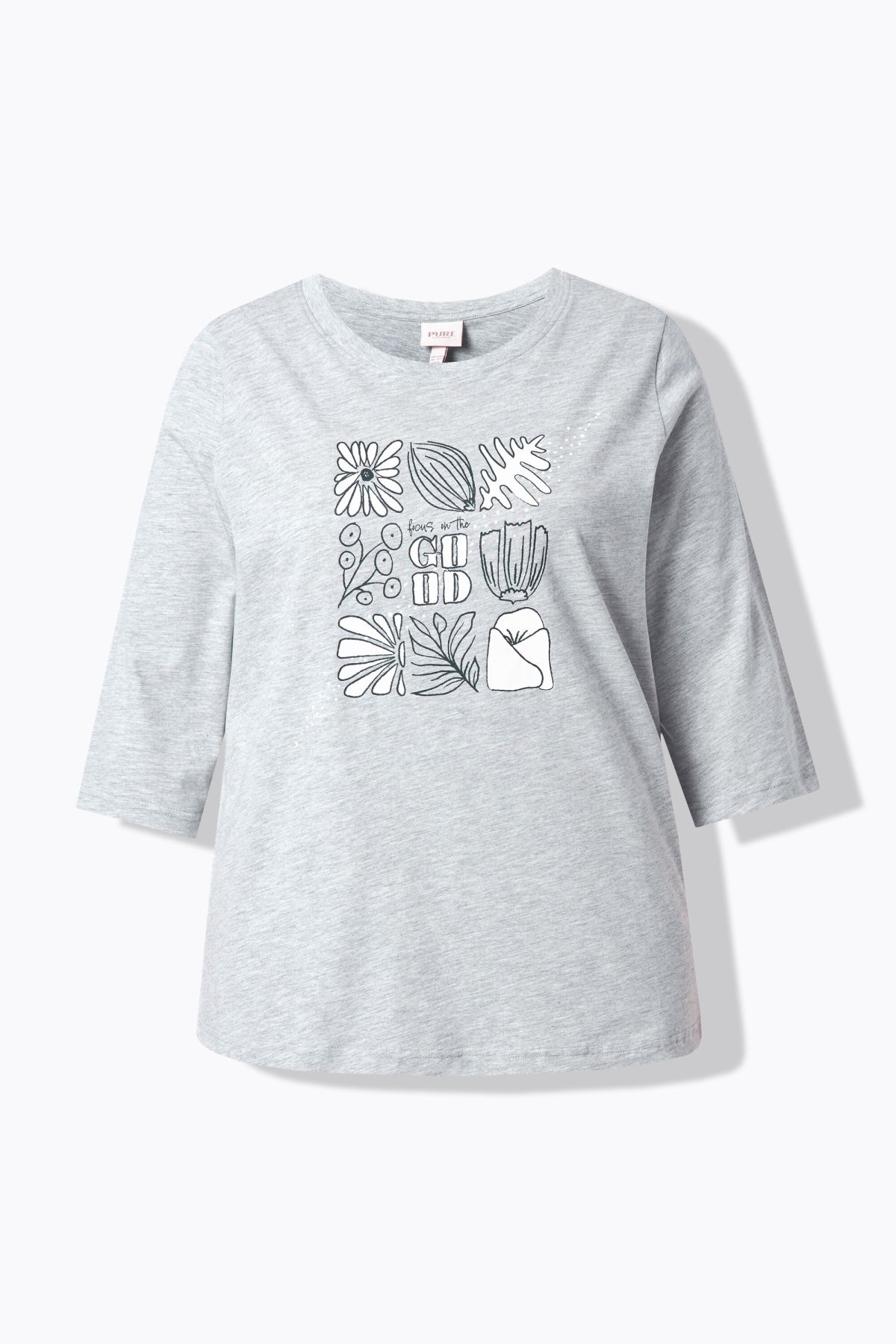 Shirt aus Biobaumwolle. Bequemer Regular Fit mit grafischem Blattmotiv, Rundhalsausschnitt und 3/4-Ärmeln. Seitenschlitze für noch mehr Tragekomfort. Organic; certified by ECOCERT Greenlife Licence no. 152026.