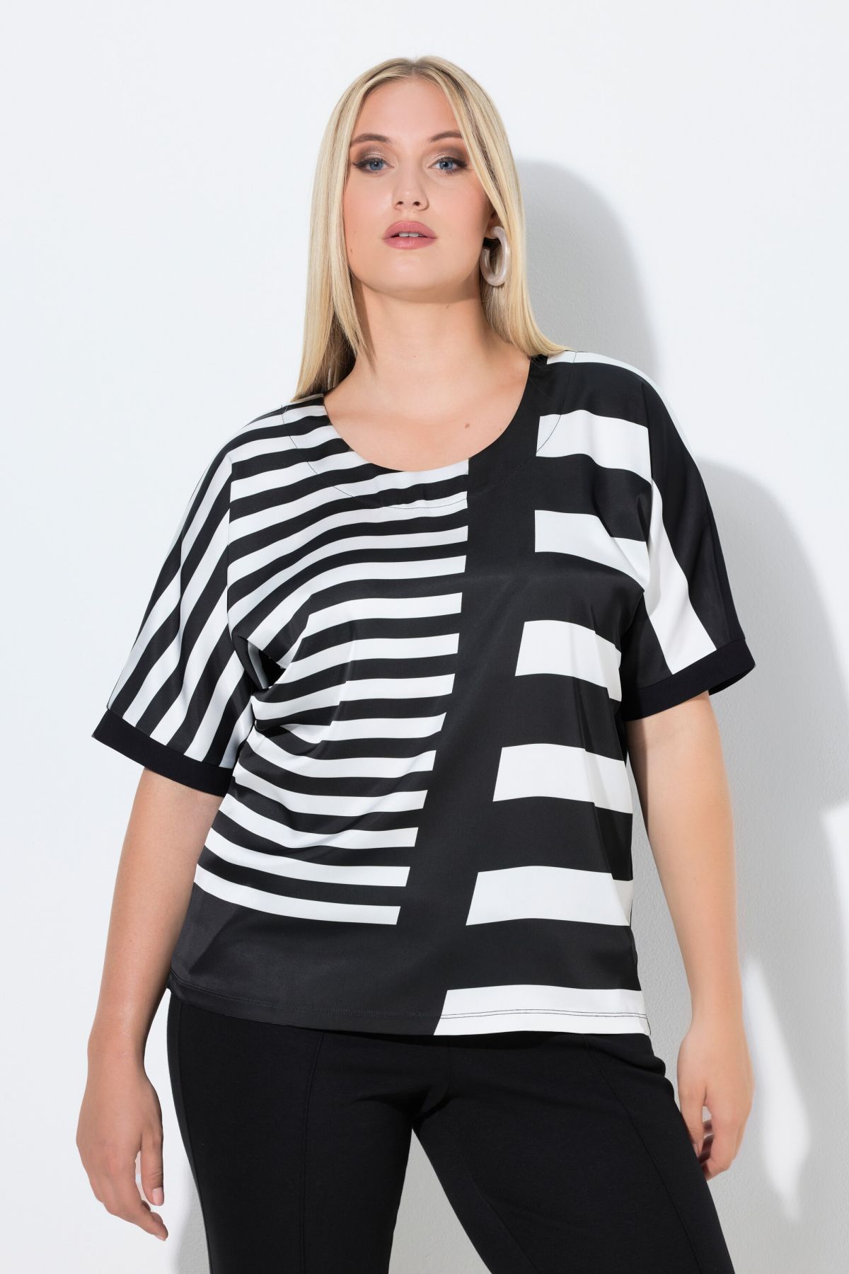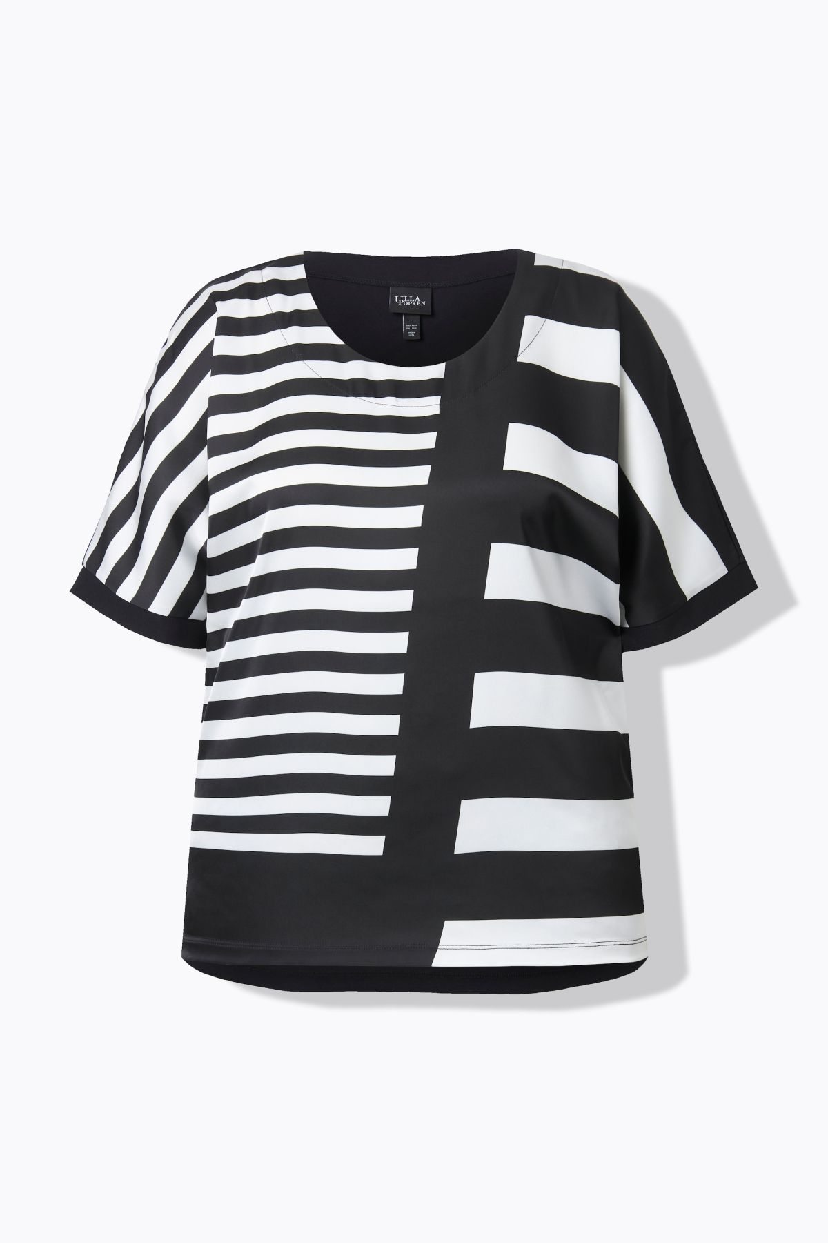 T-Shirt, lässig oversized, Vorderseite aus schimmerndem Satin mit Streifenmix. Rundhalsausschnitt, überschnittene Schultern, Halbarm mit Bündchen. Uni Rücken aus angenehm elastischem Jersey.