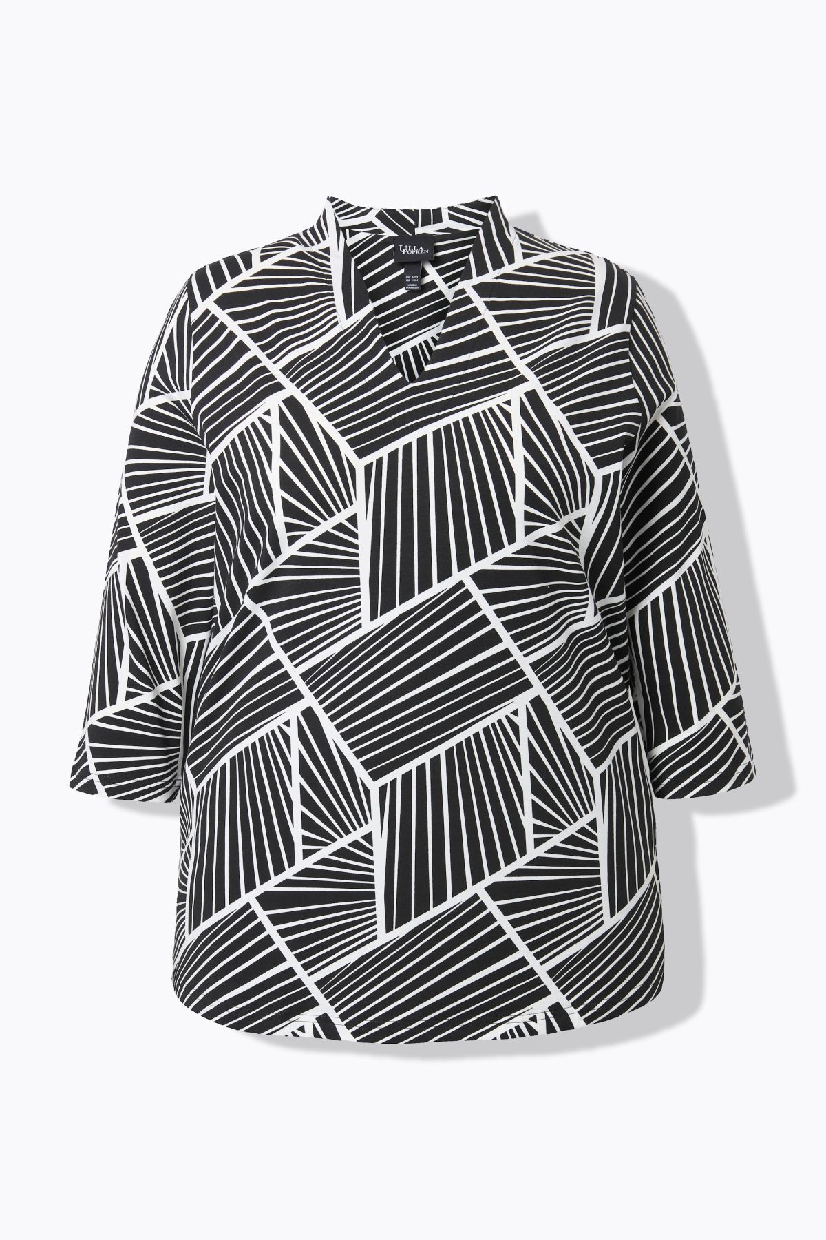 Shirt, bequemer Classic Fit, aus angenehm elastischem Jersey mit grafischem Muster. Femininer Kelchkragen mit V-Ausschnitt, 3/4-Ärmel. Seitenschlitze für noch mehr Tragekomfort.