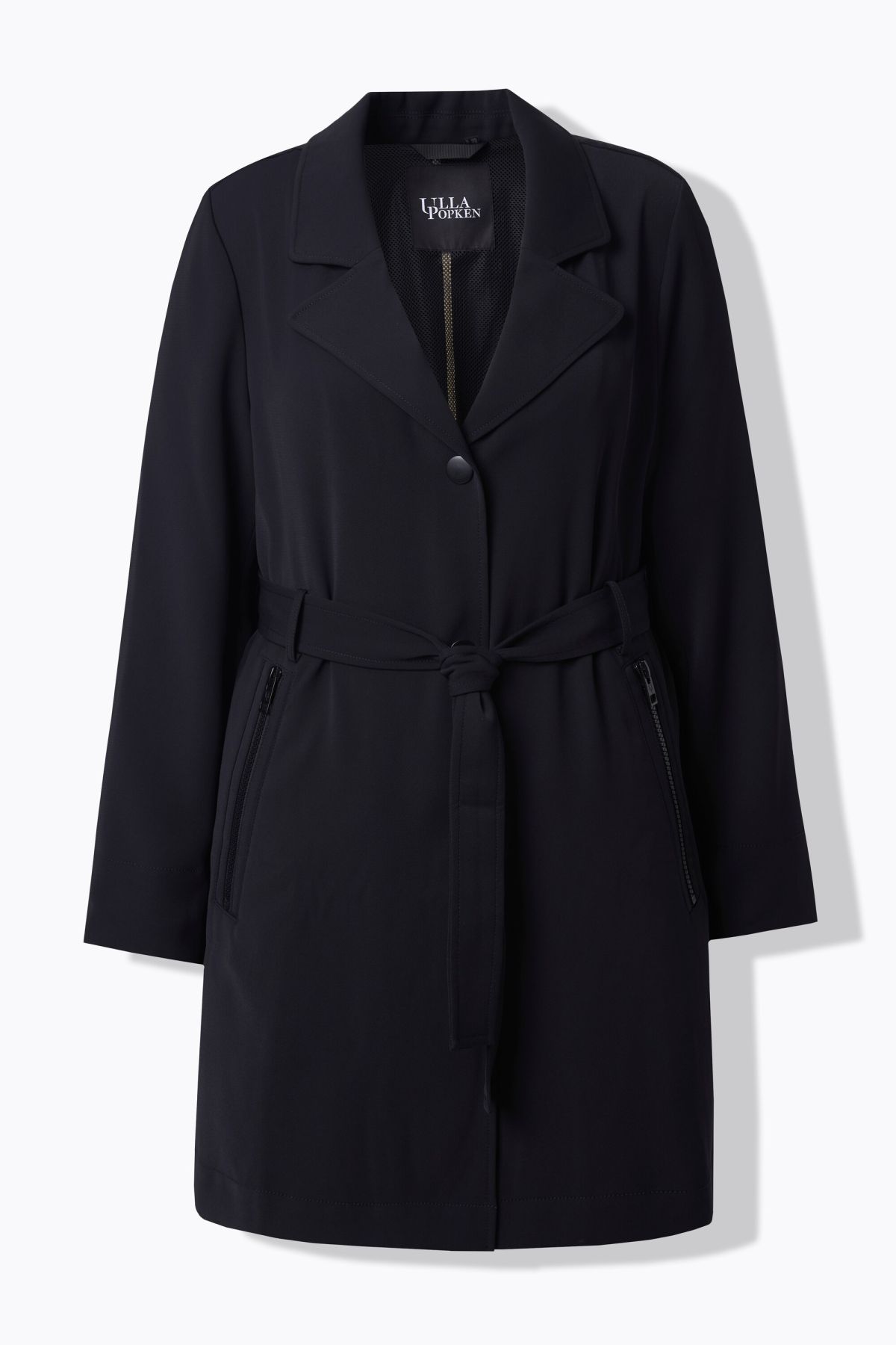 Trenchcoat, A-Linie, aus leichter, wettertauglicher Qualität. Klassisch und pflegeleicht - mit Reverskragen, Druckknopf-Leiste und Bindegürtel in der Taille - immer deine Wunschsilhouette. 2 Reißverschlusstaschen, Langarm. Saumschlitz im Rücken für noch mehr Tragekomfort. Moderne, leichte Innenverarbeitung  mit Mesh-Halbfutter und Piping.