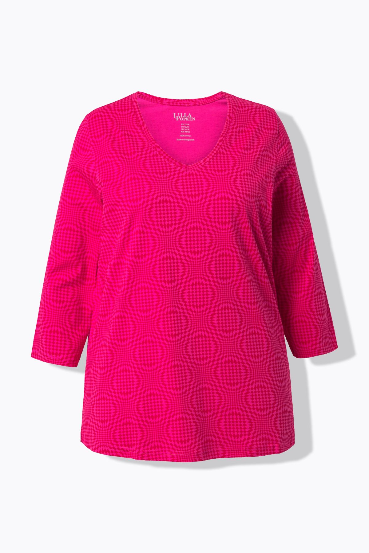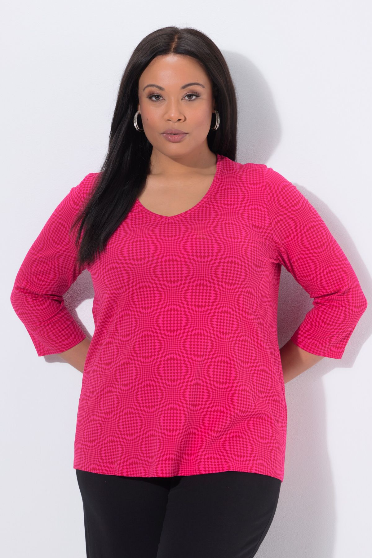Longshirt, A-Linie, mit grafischem Muster. V-Ausschnitt, 3/4-Ärmel. Bequem weiter Saum.