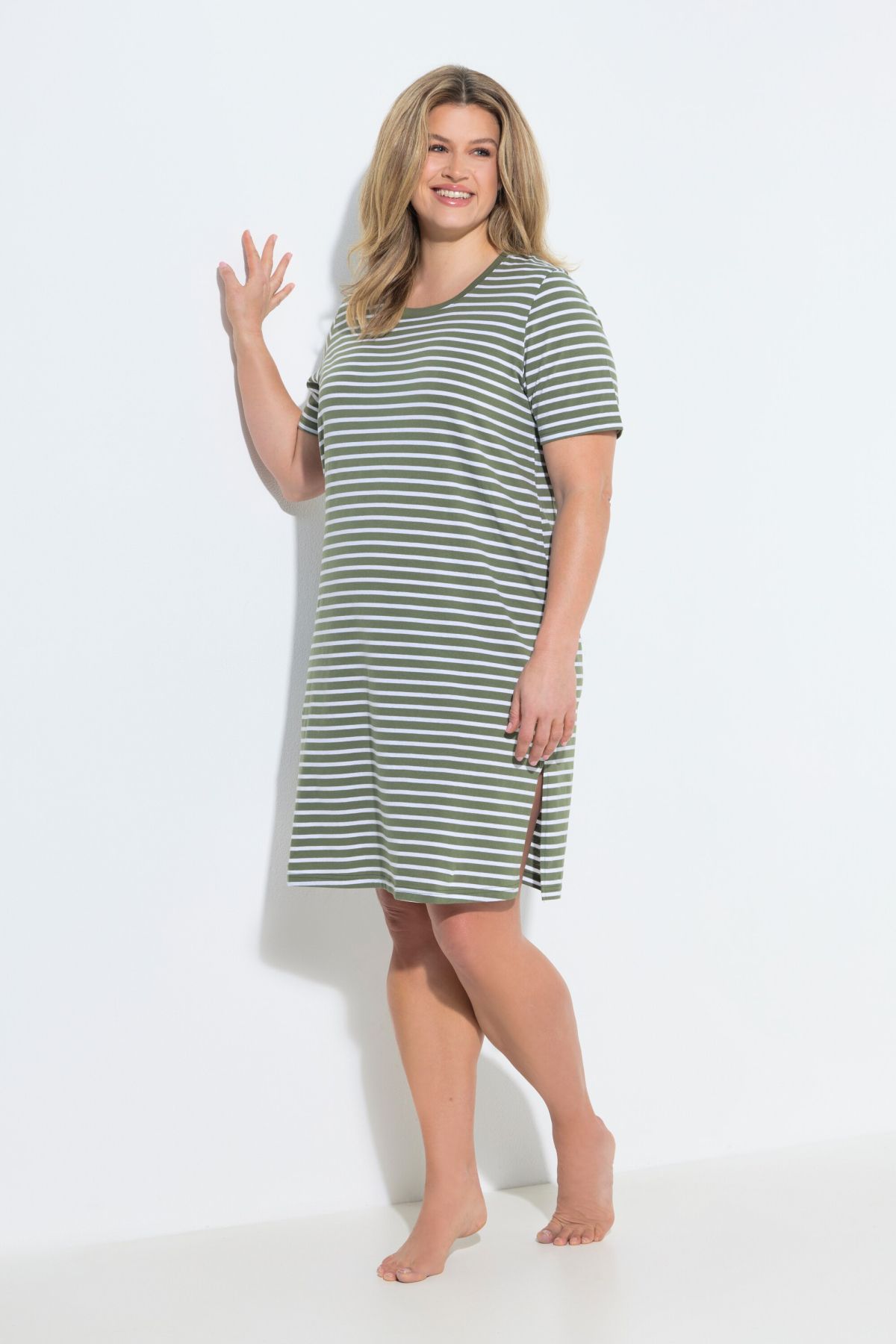Grand T-shirt/chemise de nuit en coton bio rayé, décolleté rond et manches courtes