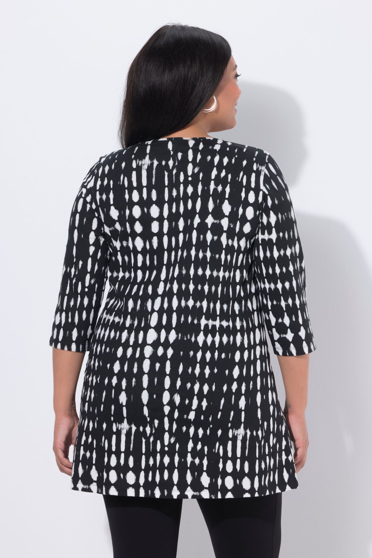 Longshirt, A-Linie, mit Batikmuster. Kleine Aussparung am Rundhalsausschnitt, 3/4-Ärmel. Bequem weiter Saum.