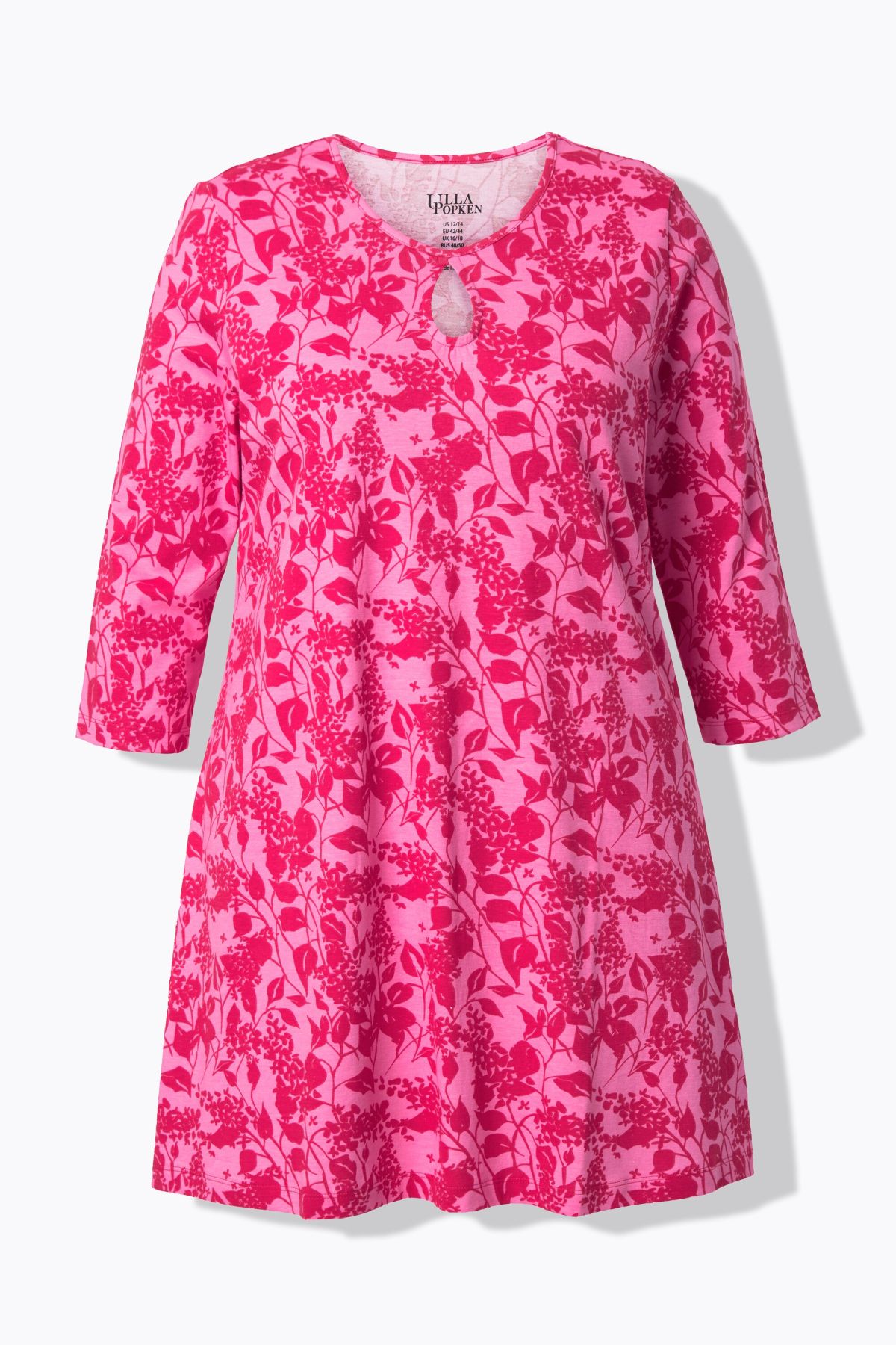 attraktives Blütenmuster, Rundhalsausschnitt mit kleiner Aussparung, längere A-Linie mit bequem weitem Saum, 3/4-Ärmel, reine Baumwolle, Länge ca. 86 cm.