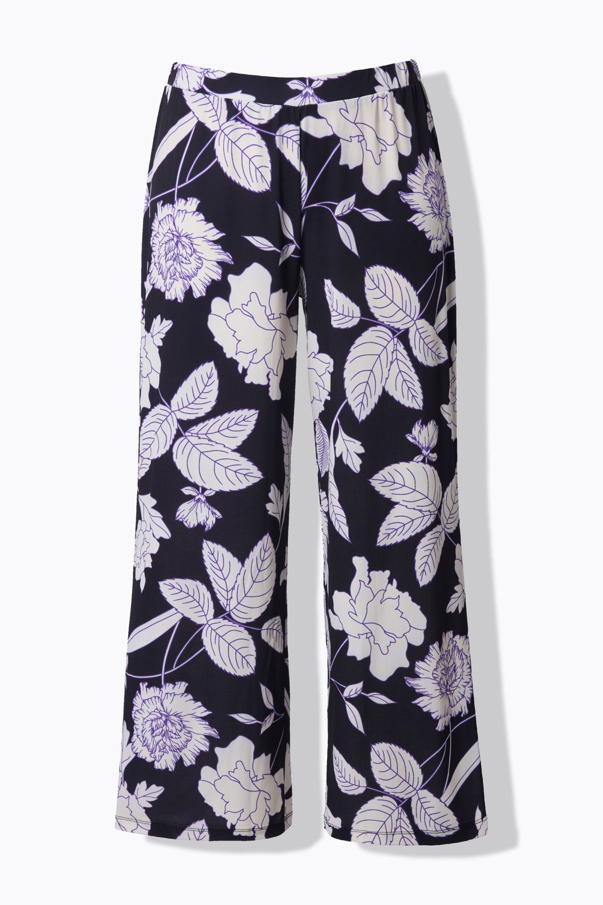modischer Druck, weites, gerades Bein, bequemer Elastikbund, seitliche Taschen, extraglatter Jersey, Schrittlänge ca. 76 cm.