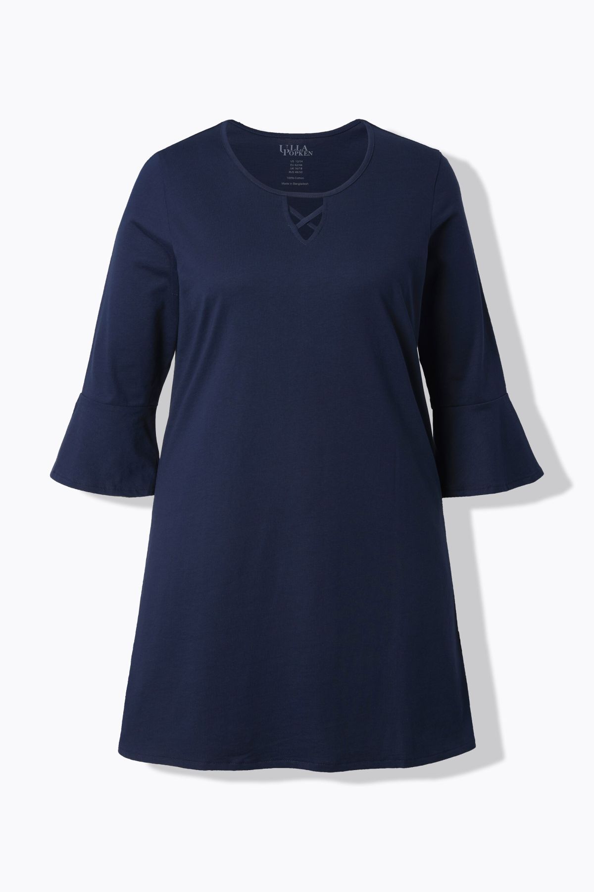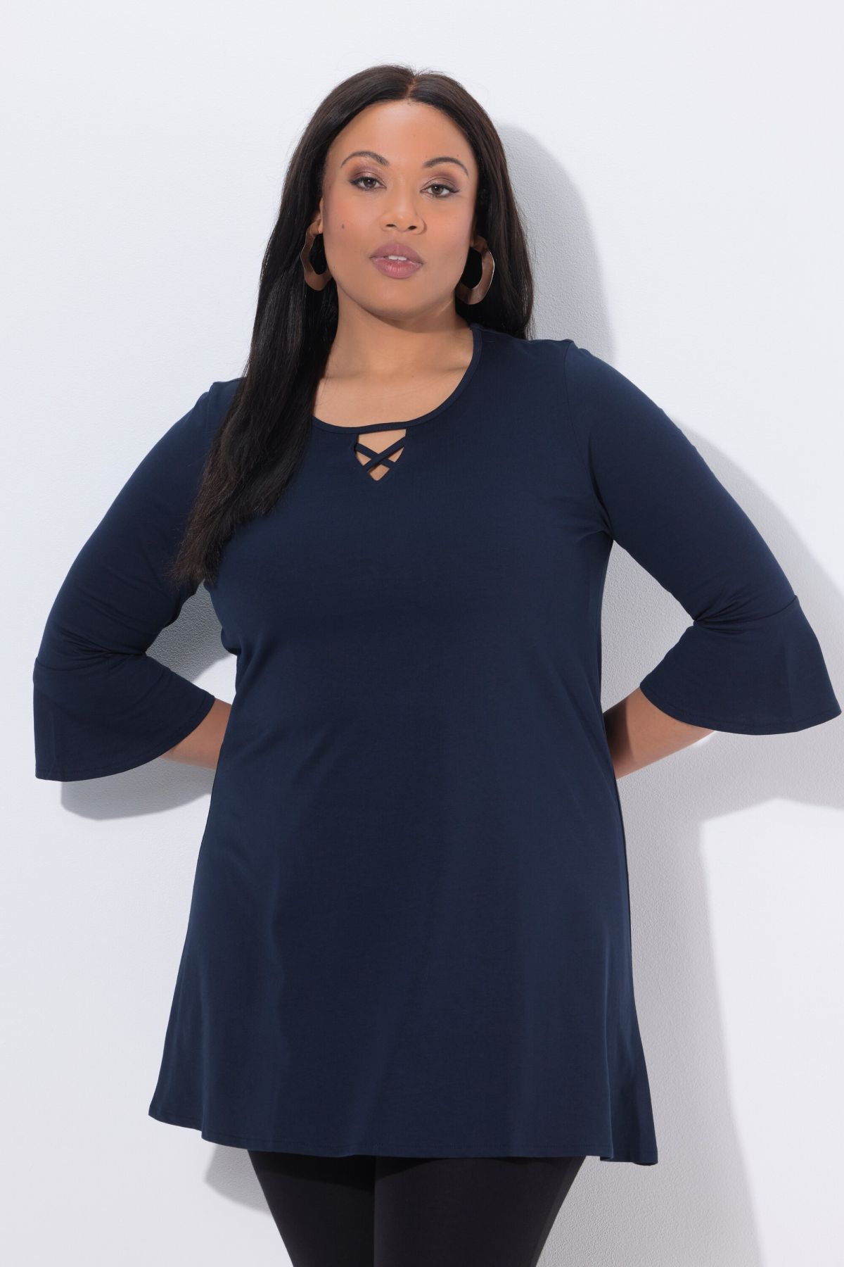 Longshirt, A-Linie - neue Optik! Tunika-Ausschnitt mit Zierbändern, 3/4-Ärmel mit Volant. Bequem weiter Saum.