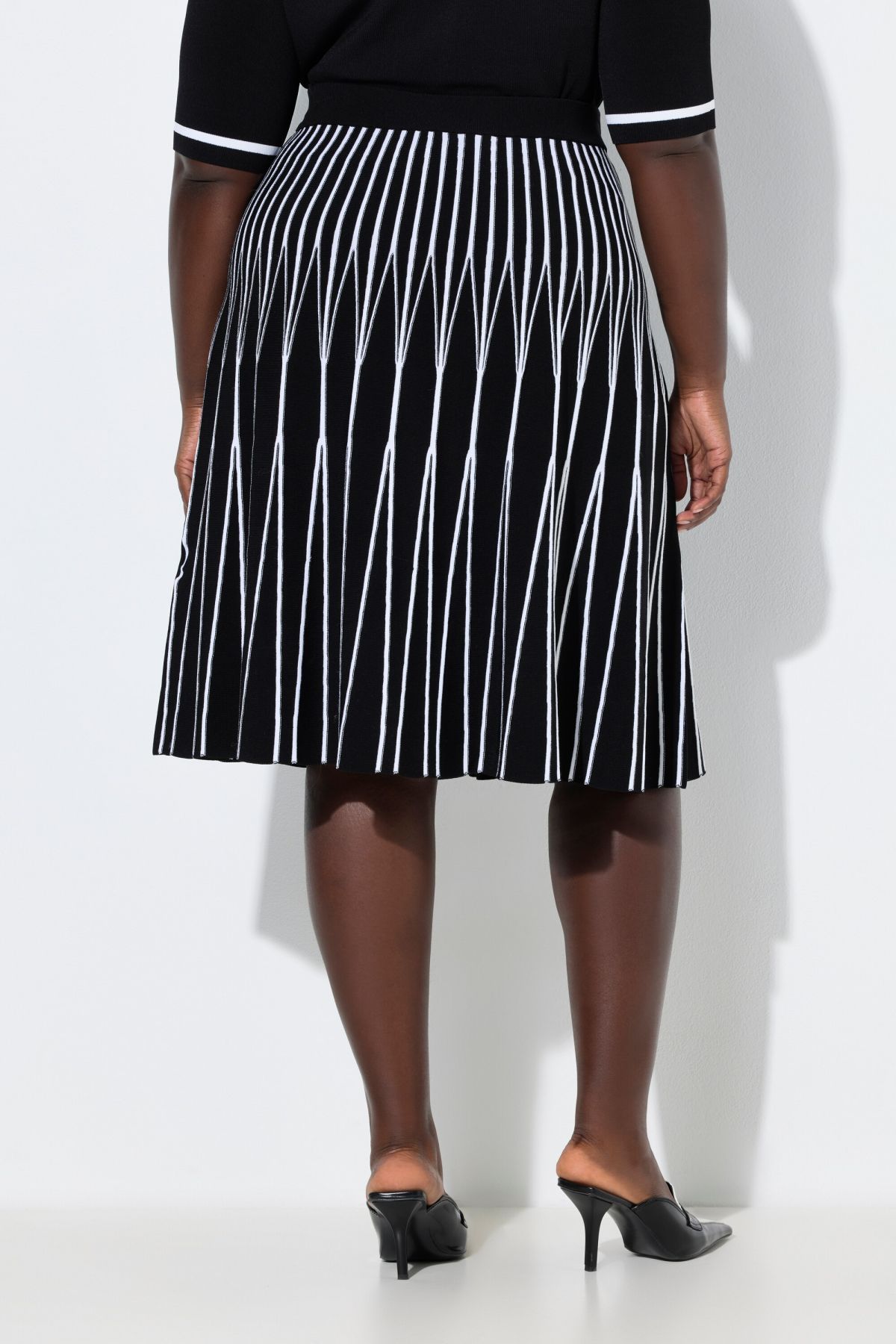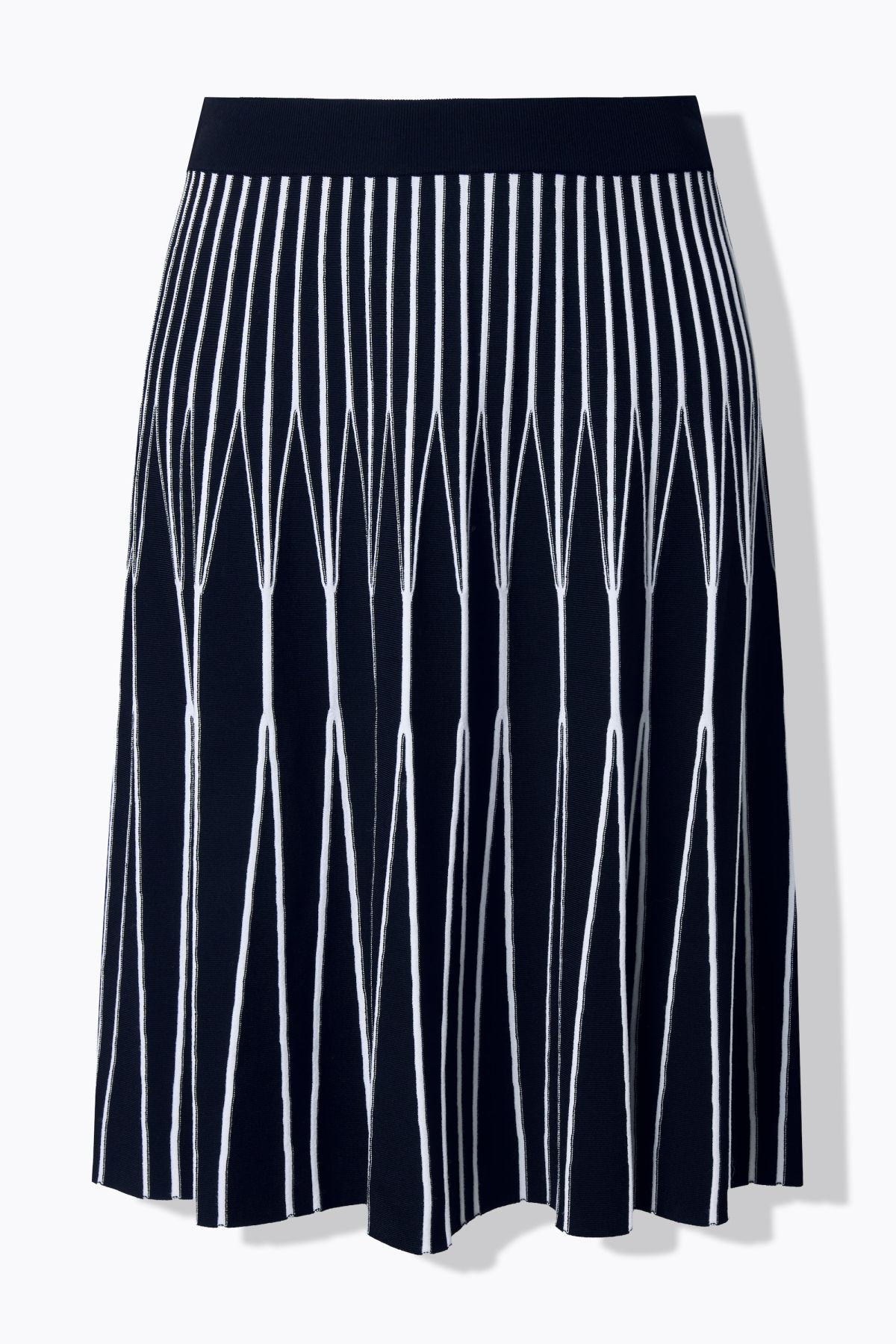 modernes Streifendesign, aus elegantem, zweifarbig gestrickten Plissee, weite A-Linie, bequemer Elastikbund, hochwertige Viskosequalität, Länge ca. 65 cm.