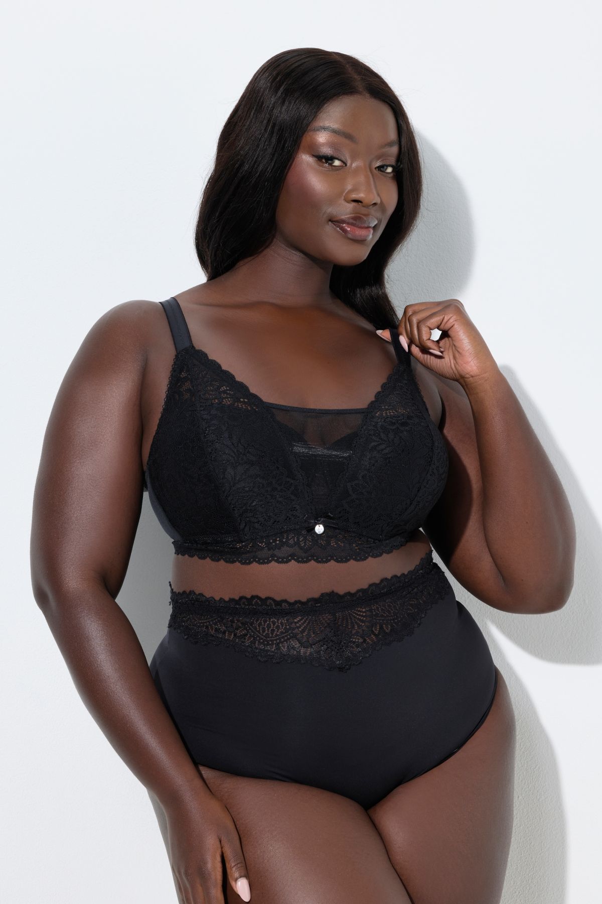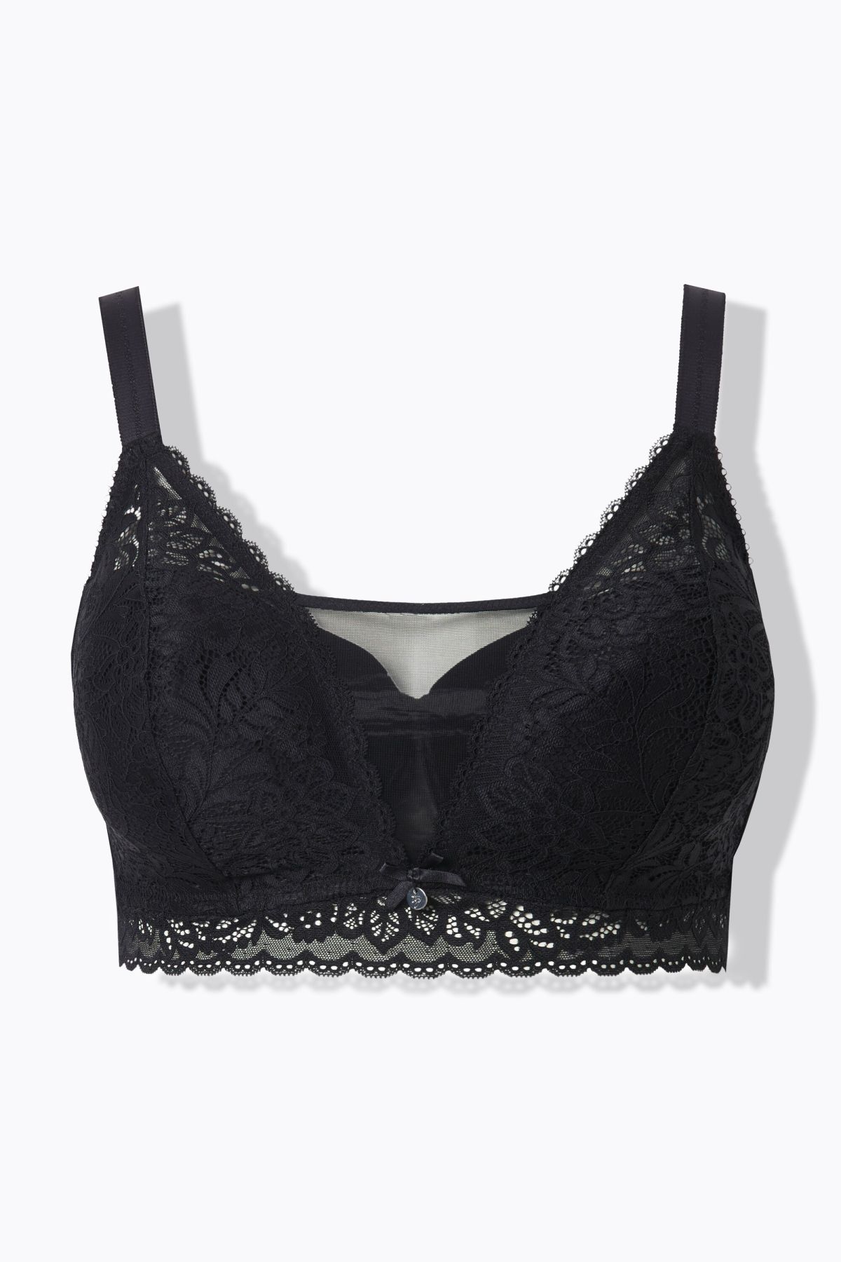 bequeme Passform ohne Bügel, weiche Softschalen, feine Spitze, transparenter Einsatz zwischen den Schalen, verstellbare Träger
